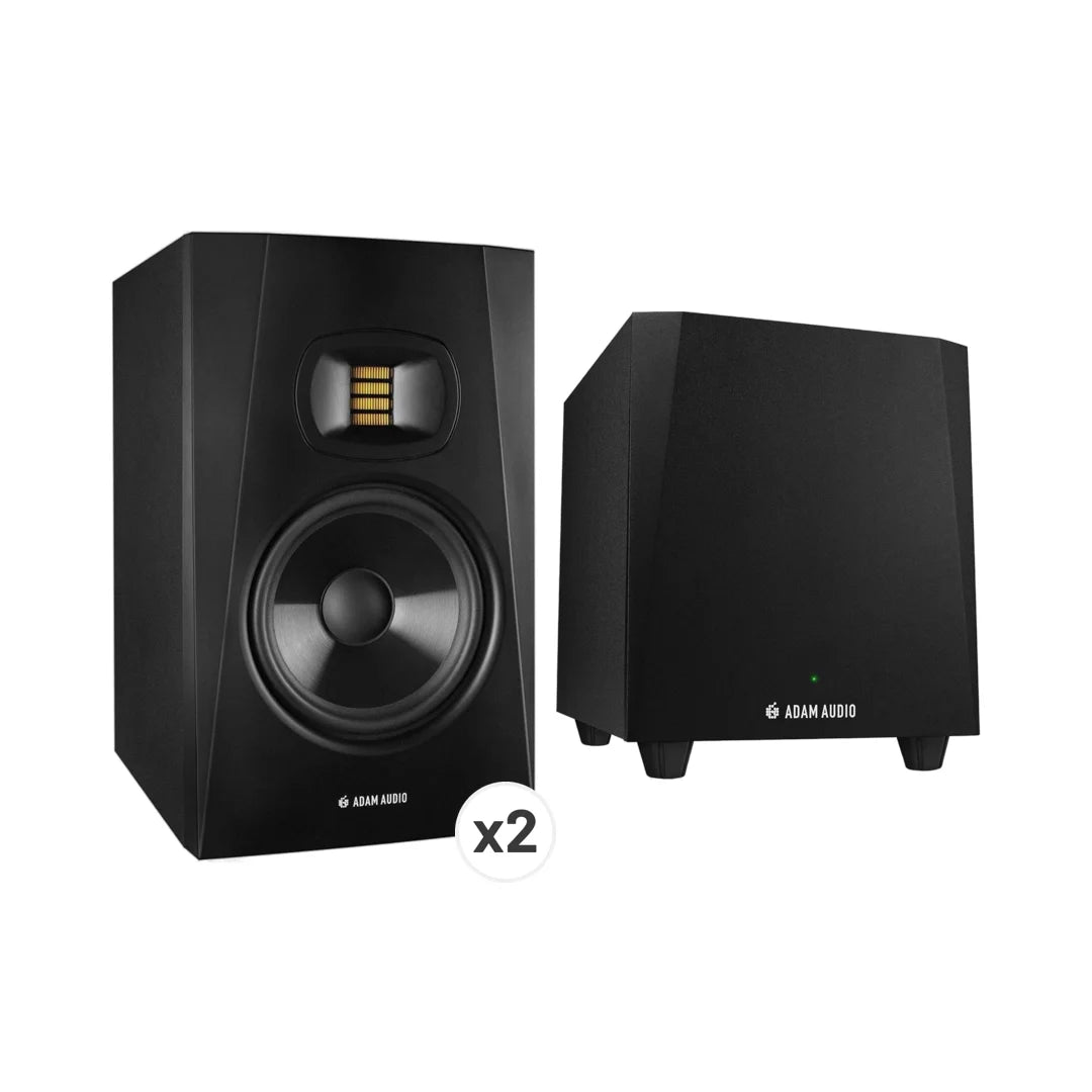 The Adam Audio T7V and T10S bundle offers a powerful studio monitoring solution for small to mid-sized studios. The T7V's U-ART ribbon tweeter and 7" woofer deliver detailed highs and punchy bass, while the T10S subwoofer extends low-end performance down to 28Hz with minimal distortion. Ideal for content creators and musicians, this bundle provides enhanced clarity and depth to your sound without cluttering your workspace. With flexible connectivity and adjustable settings, the T7V and T10S combination ensures seamless integration for accurate monitoring and immersive mixing experiences.