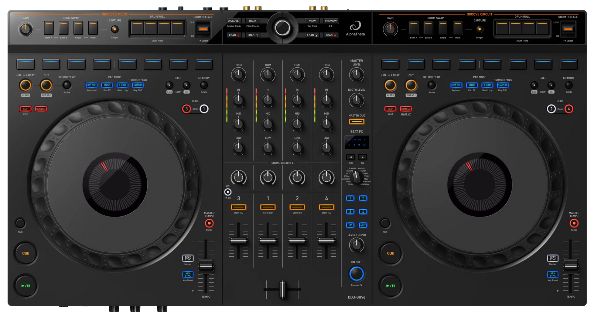 AlphaTheta DDJ-GRV6 - Innovative 4-Channel DJ Controller for Creative Performance