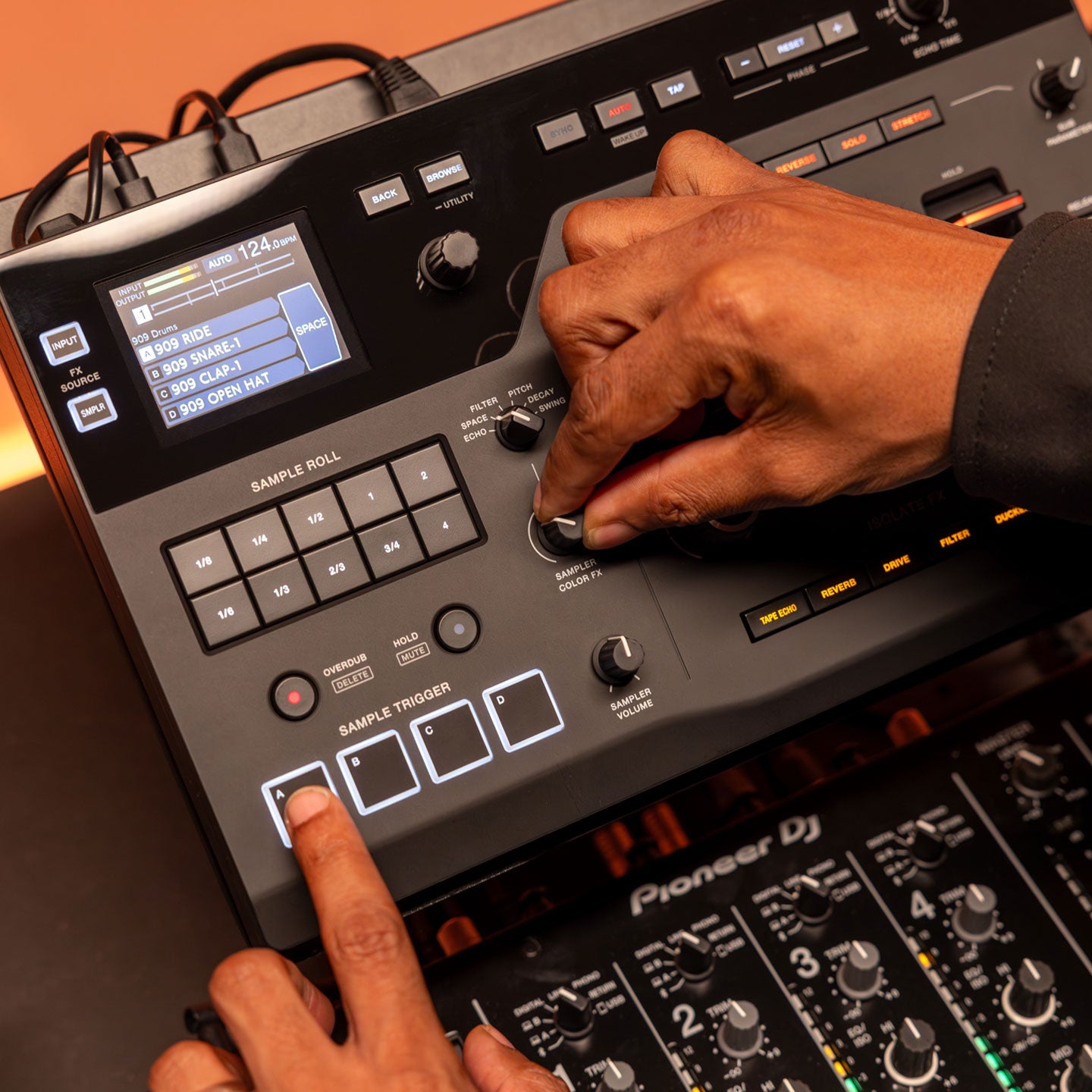 - Powerful sampler with roll, overdub, and dedicated effects