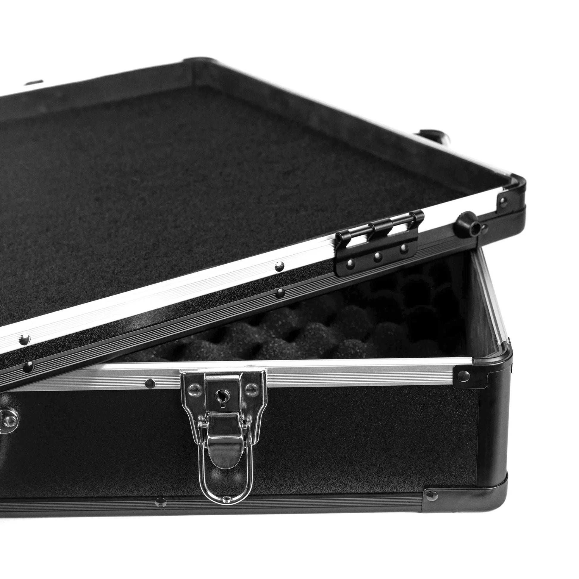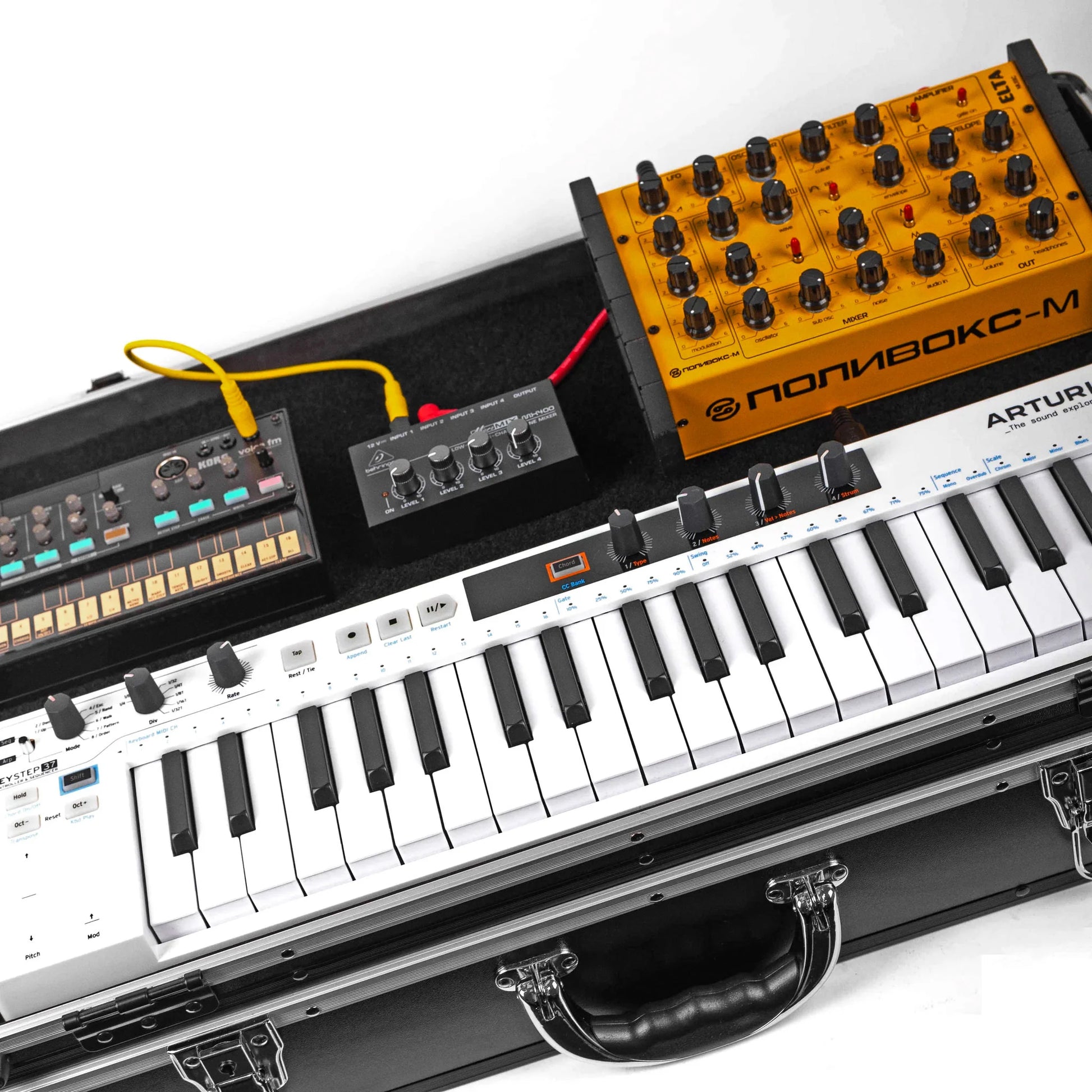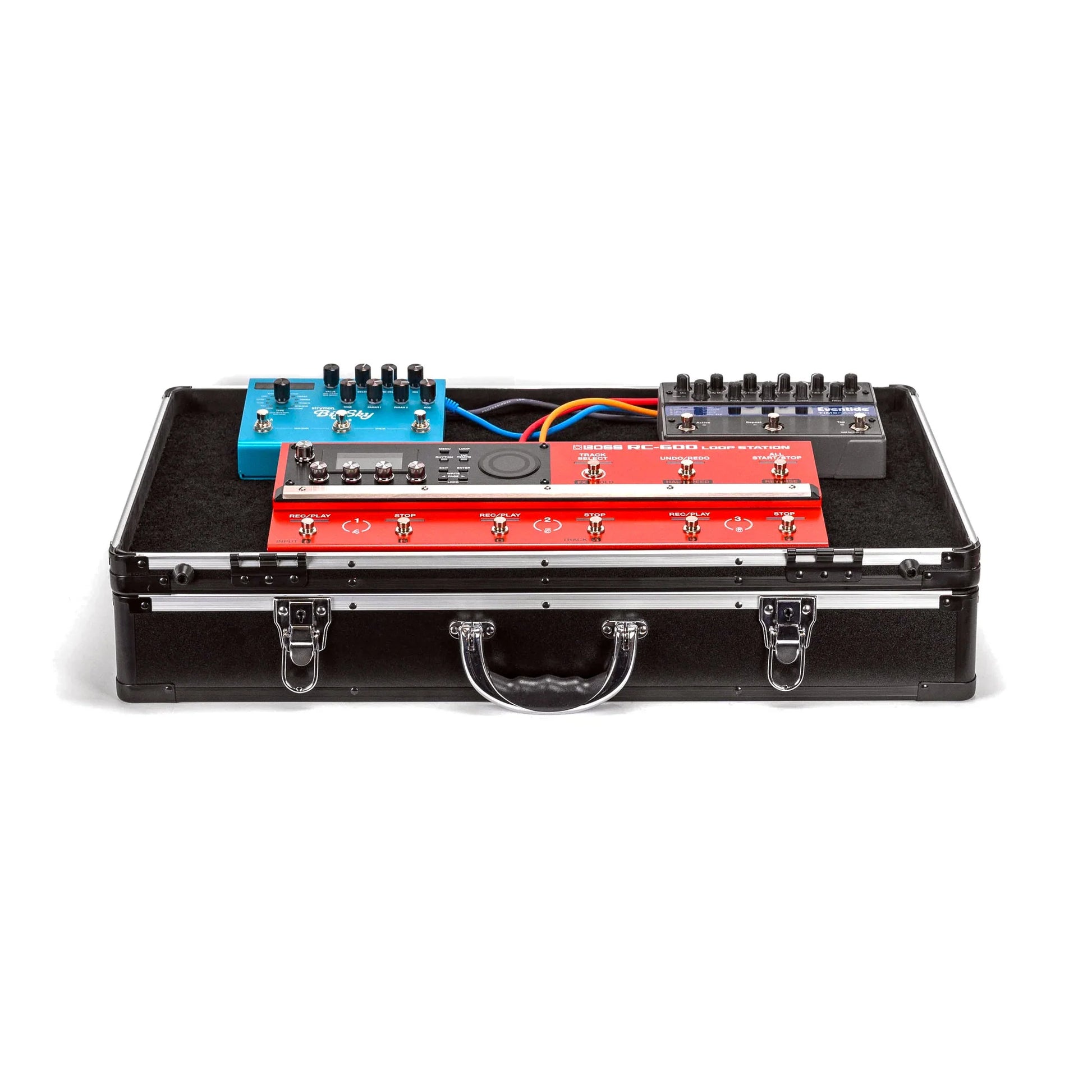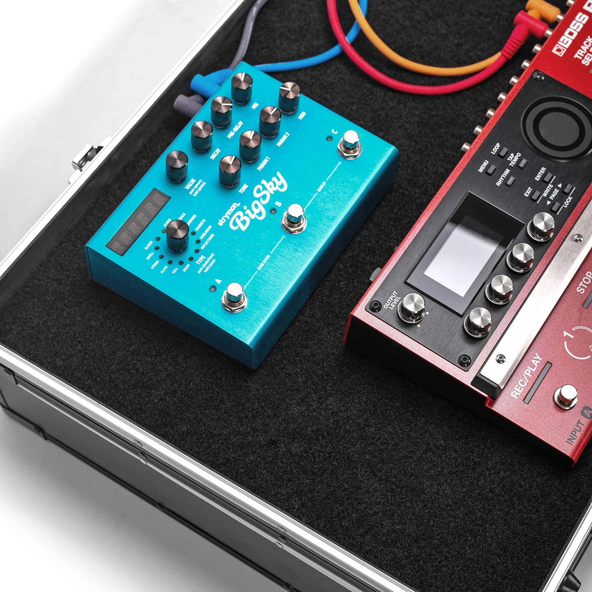 All your gear can be completely wired up while it’s in the case, just like a guitarist’s pedalboard. So when it’s time to perform, you just detach the removable lid, place it on a keyboard stand or table, and you’re ready to play.