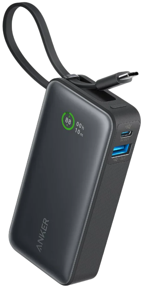 - Anker Nano Power Bank 10 000 mAh with built-in USB-C cable (black)