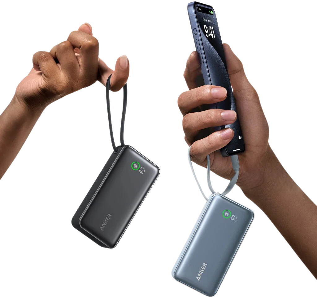 Compact yet powerful, the Anker Nano Power Bank delivers fast charging with an integrated USB-C cable—no extra cords required. With enough capacity to recharge your phone up to two times and a sleek, pocketable design, it’s perfect for staying powered on the move.