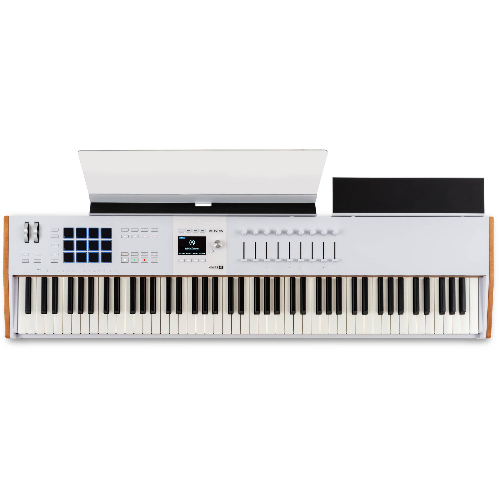 The Arturia KeyLab 88 MK3 is a flagship MIDI controller built for professional musicians, producers, and live performers. Featuring an expressive 88‑key hammer‑action keybed with aftertouch, advanced performance modes, and premium controls, it offers unparalleled playability and workflow integration. Its robust wood and aluminum construction, full‑color screen, and seamless DAW integration make it the perfect centerpiece for any studio or stage setup.