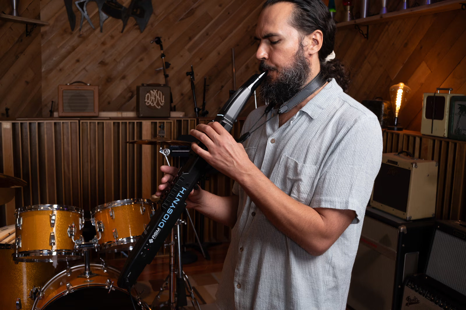 The ASM Diosynth blends the familiar tactile feel of a woodwind instrument with cutting-edge synthesis. With moving keys, a breath sensor, reed and bite controls, gyroscope/motion input, joystick/modulation pads and a powerful twin-engine sound system, the Diosynth gives wind players unprecedented expressive flexibility—available at Soundium.