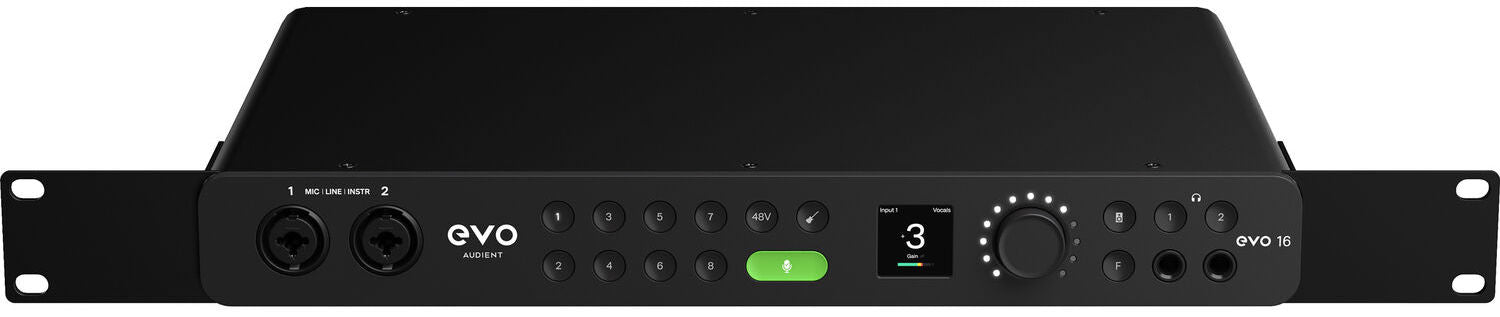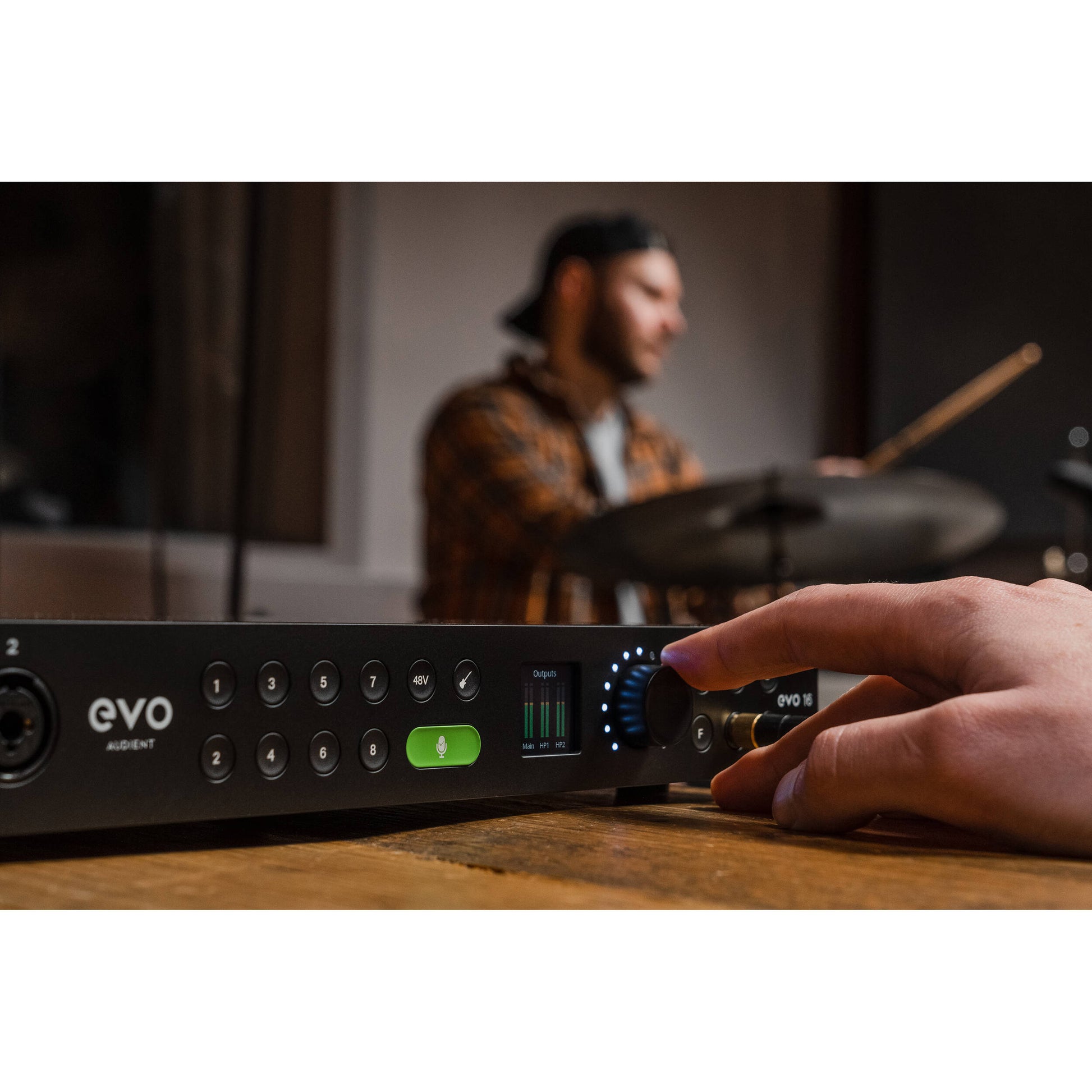 Step into pro-level recordings with the Audient EVO 16. Packed with eight SmartGain-enabled EVO mic preamps, ultra-low-latency conversion, and an intuitive Motion UI with full-color display, it offers streamlined control and expansive I/O in a desktop- or rack-ready package—meticulously crafted for creators aiming high.
