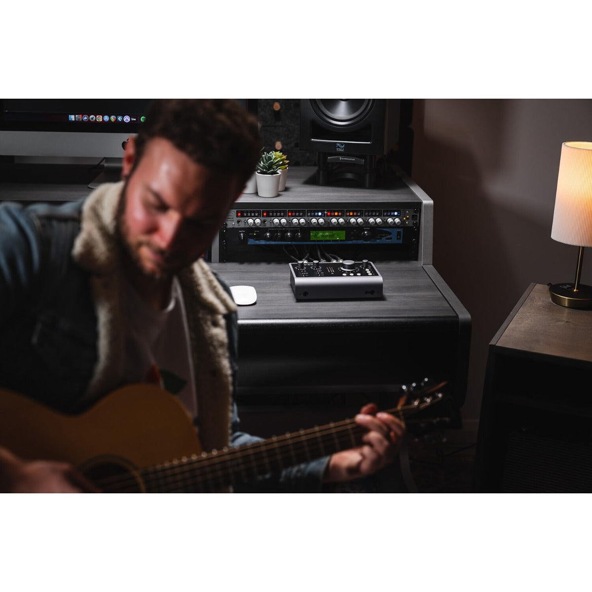 The iD24 packs pro-grade studio features into a portable rack-friendly design. Record with crystal clarity, route hardware in real time, expand inputs when needed, and streamline control—all without software menus. It’s studio quality in a responsive, creative-friendly package.