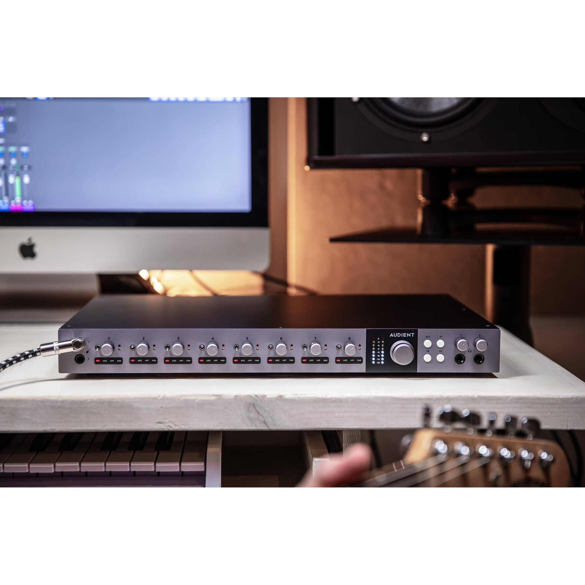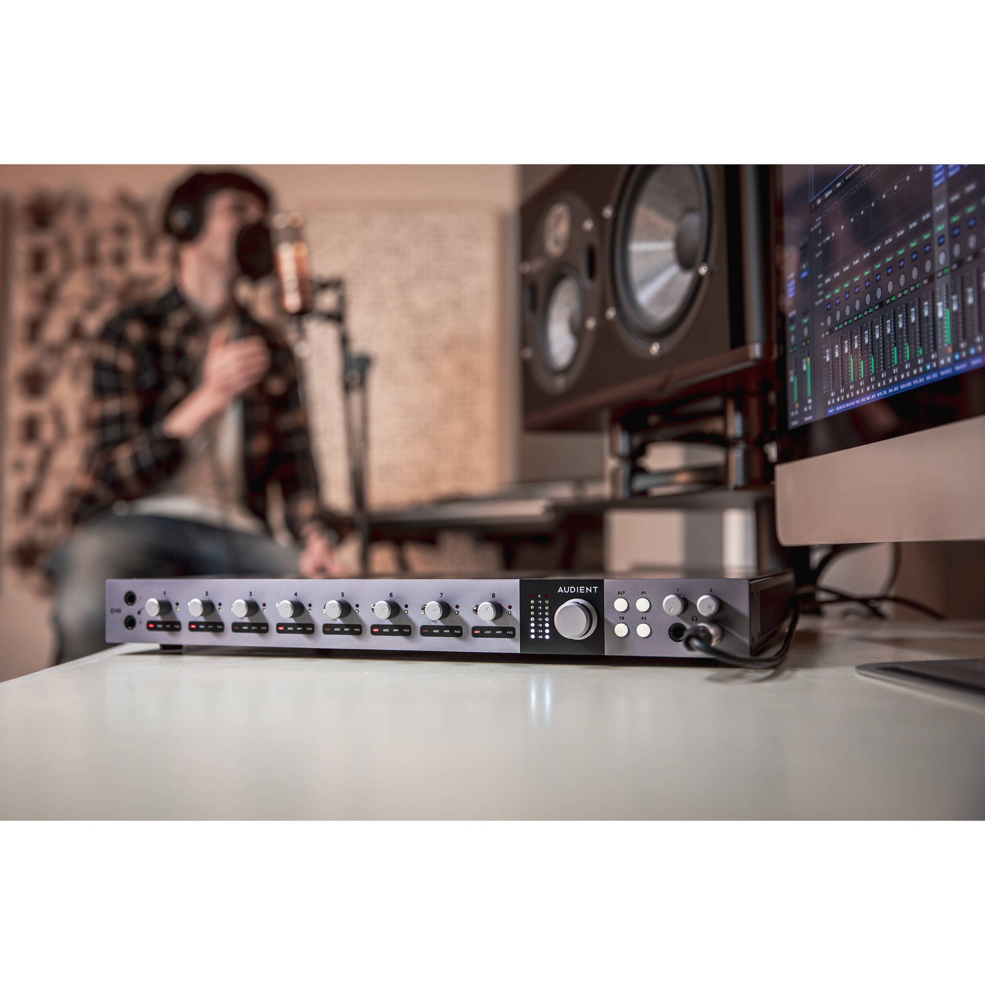 - Eight console-grade mic preamps: Discrete design from Audient’s ASP8024-HE console with up to 68 dB gain