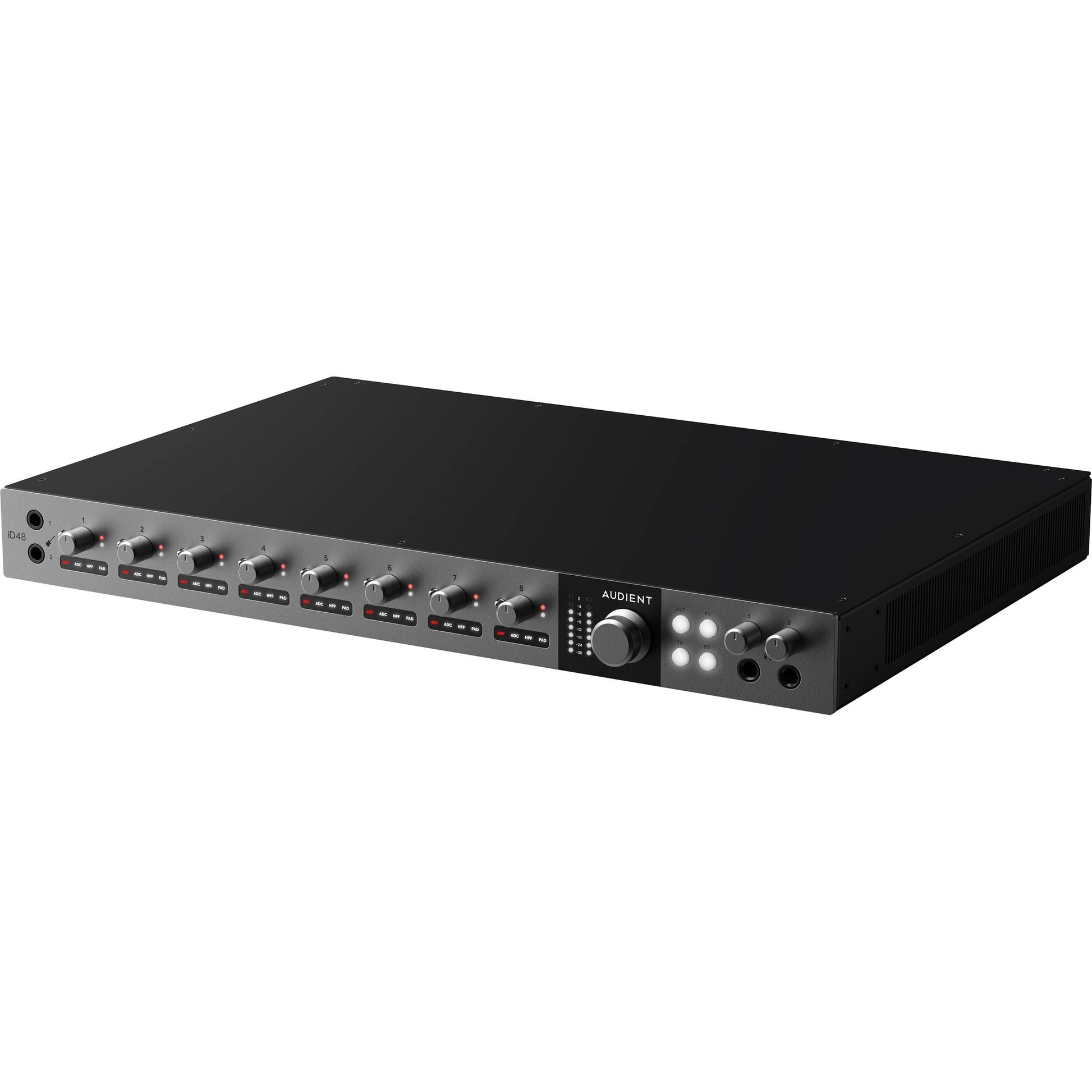 Engineered for professional producers, engineers, and hybrid studio workflows, the Audient iD48 delivers console-grade performance with eight Audient mic preamps, ultra-clean conversion, flexible routing, and ADAT expandability—all in a rugged 1U desktop/rack form.