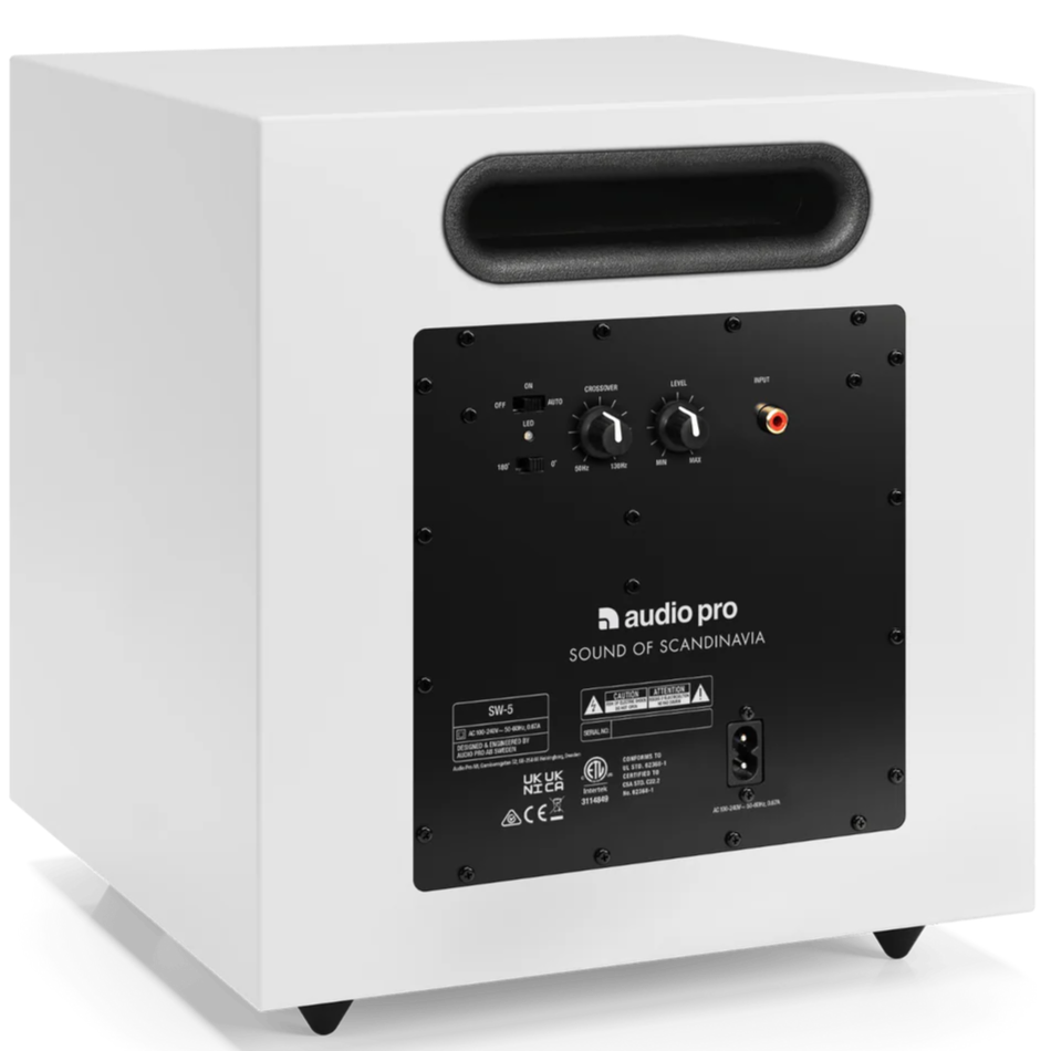 The Audio Pro SW‑5 adds rich, room‑filling low end to your music and TV audio. Designed to pair perfectly with Audio Pro’s speakers and multiroom systems, this compact yet powerful subwoofer enhances your listening experience with deep, controlled bass in a discreet form factor.