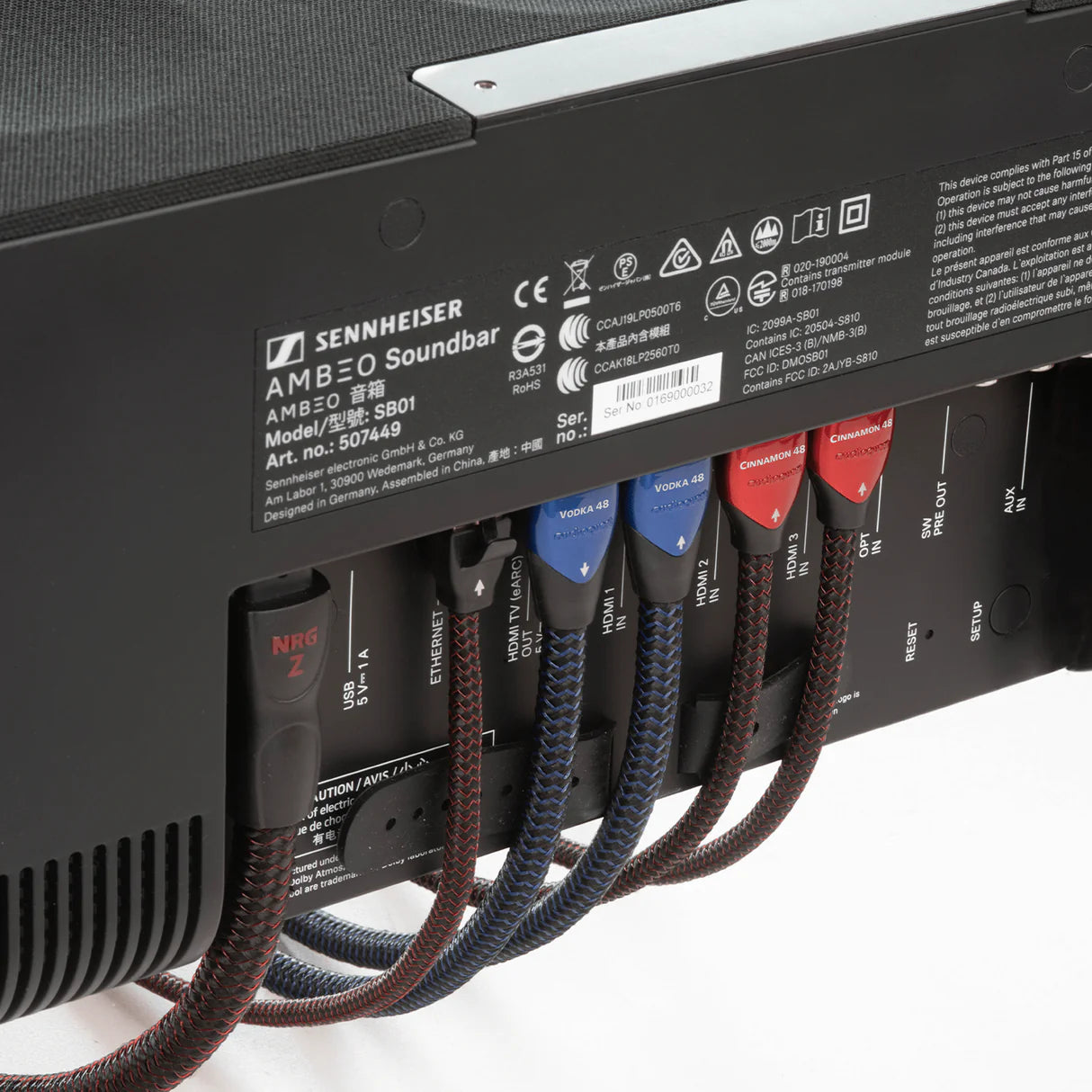 AudioQuest Cinnamon 48 8K-10K 48Gbps HDMI cable combines superior materials and superior design to produce a superior entertainment experience. Featuring solid 1.25% Silver-Plated Long-Grain Copper conductors with AudioQuest’s Level-2 Noise Dissipation, in which a metal layer is placed around the 4 FRL + eARC pairs to further enhance noise-dissipation, Cinnamon 48 is meticulously designed for enhanced sound quality and outstanding overall performance. Of course, all AudioQuest 48Gbps HDMI cables can transfer up to professional 10K Ultra HD video, support Dynamic HDR, and have the conductors and bandwidth required for eARC’s enhanced sonic capabilities. Taking performance even further, all 19 conductors, comprising A/V and eARC signals, all Ground-Reference drains, and control and power conductors, are properly controlled for the most efficient dissipation of Radio-Frequency Noise.