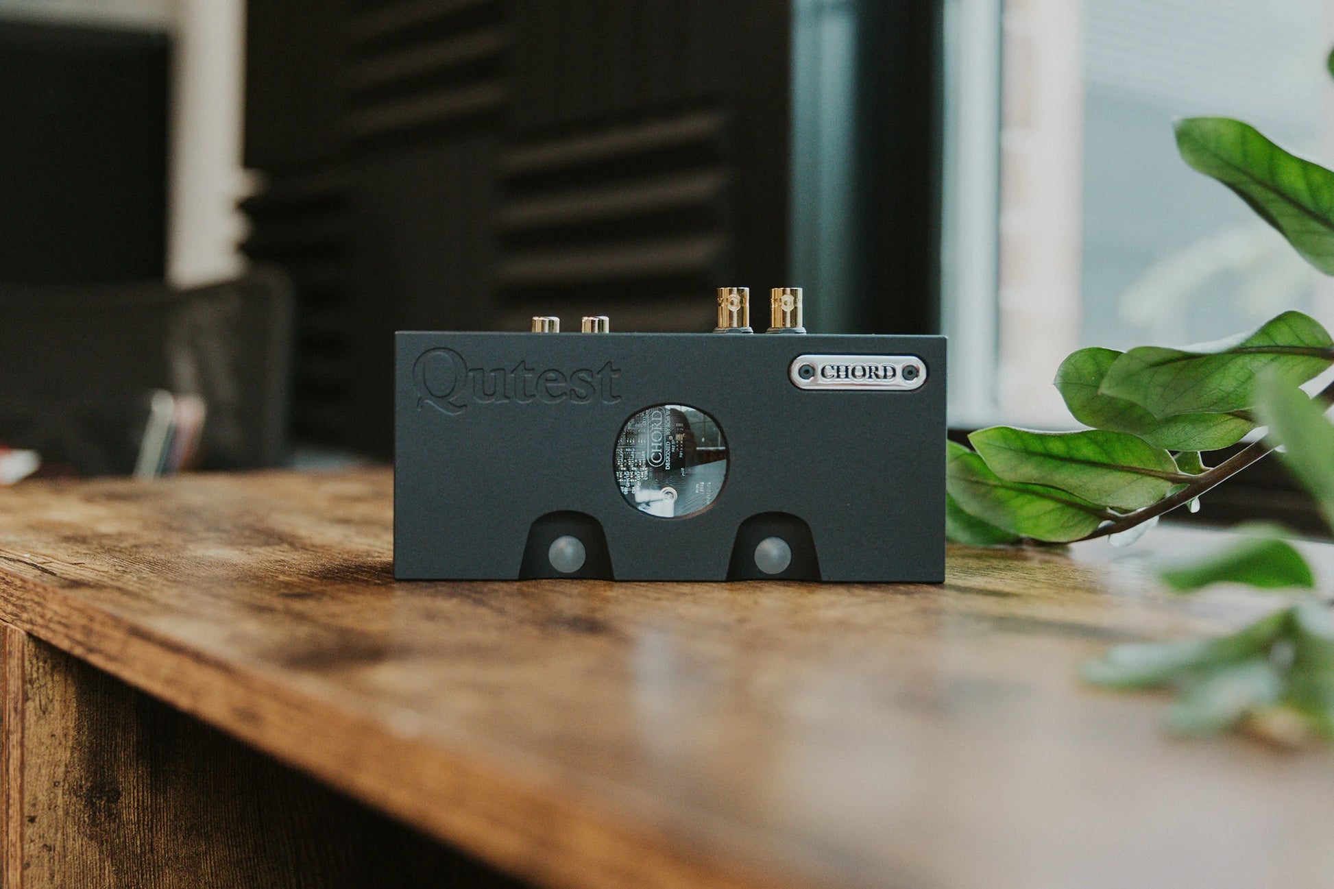 The Chord Qutest is a no‑compromise desktop DAC that brings Chord’s award‑winning FPGA technology into a compact, machined‑aluminum chassis. With a 49,152‑tap custom filter, selectable output voltage, and support for PCM up to 768 kHz and DSD512, it's an audiophile-grade digital hub designed for purity and precision.