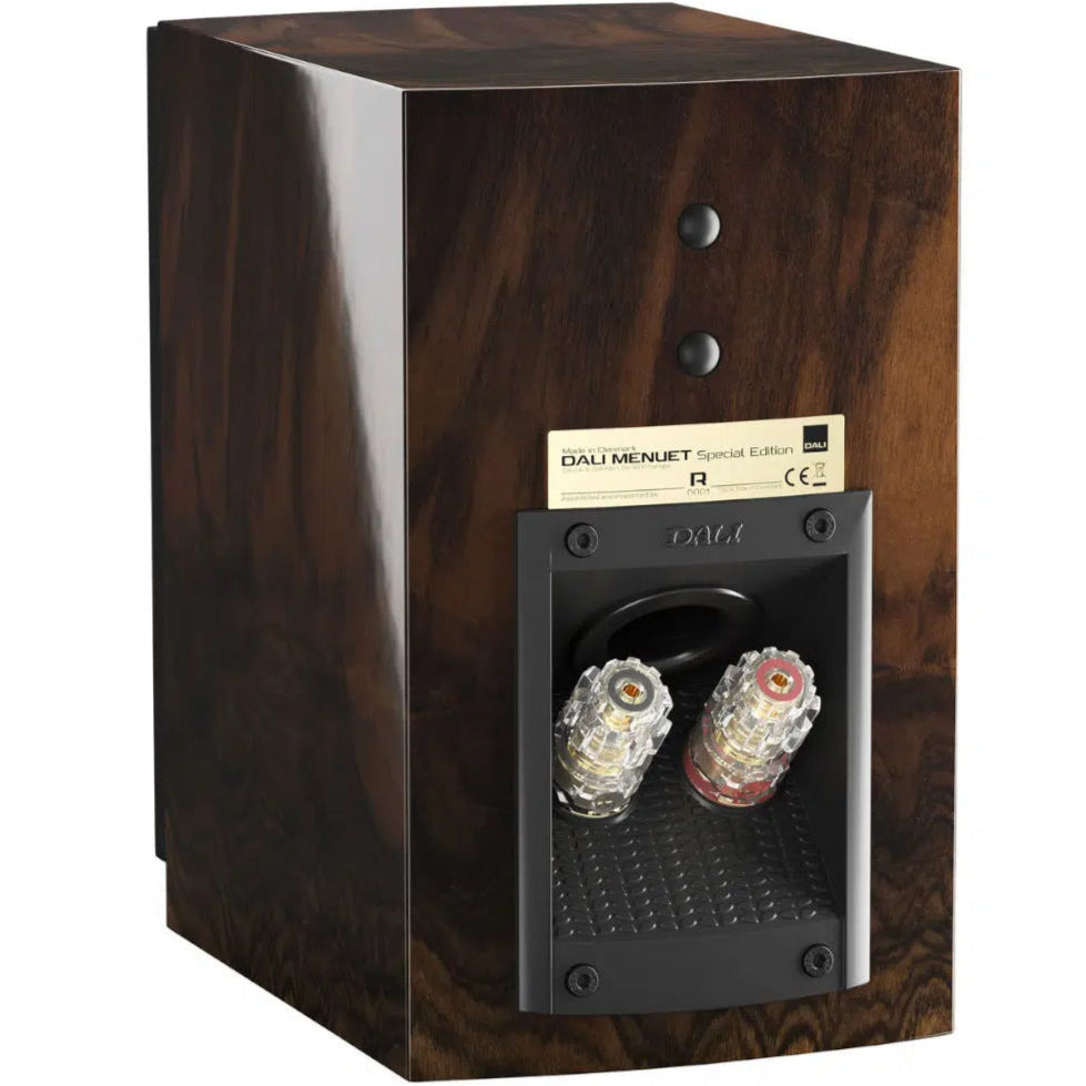 The DALI Menuet SE takes the acclaimed Menuet compact speaker and elevates it with upgraded components and a unique finish. Featuring improved crossover design, premium internal wiring, and stunning wild walnut veneer, the Menuet SE delivers refined musicality, exceptional clarity, and an even more exclusive look.
