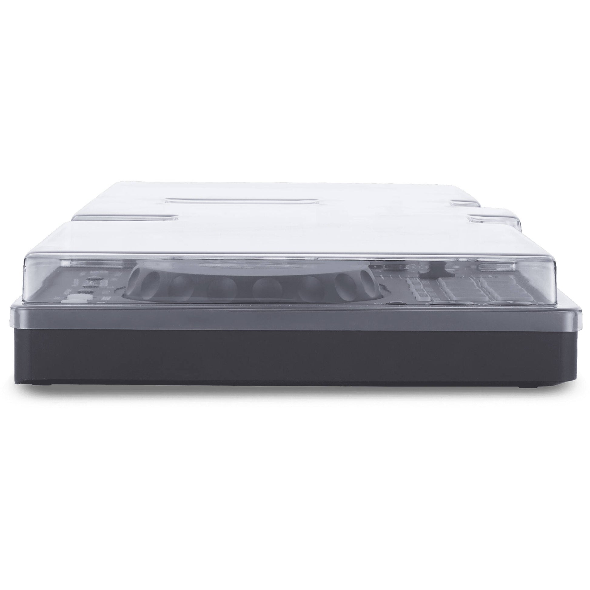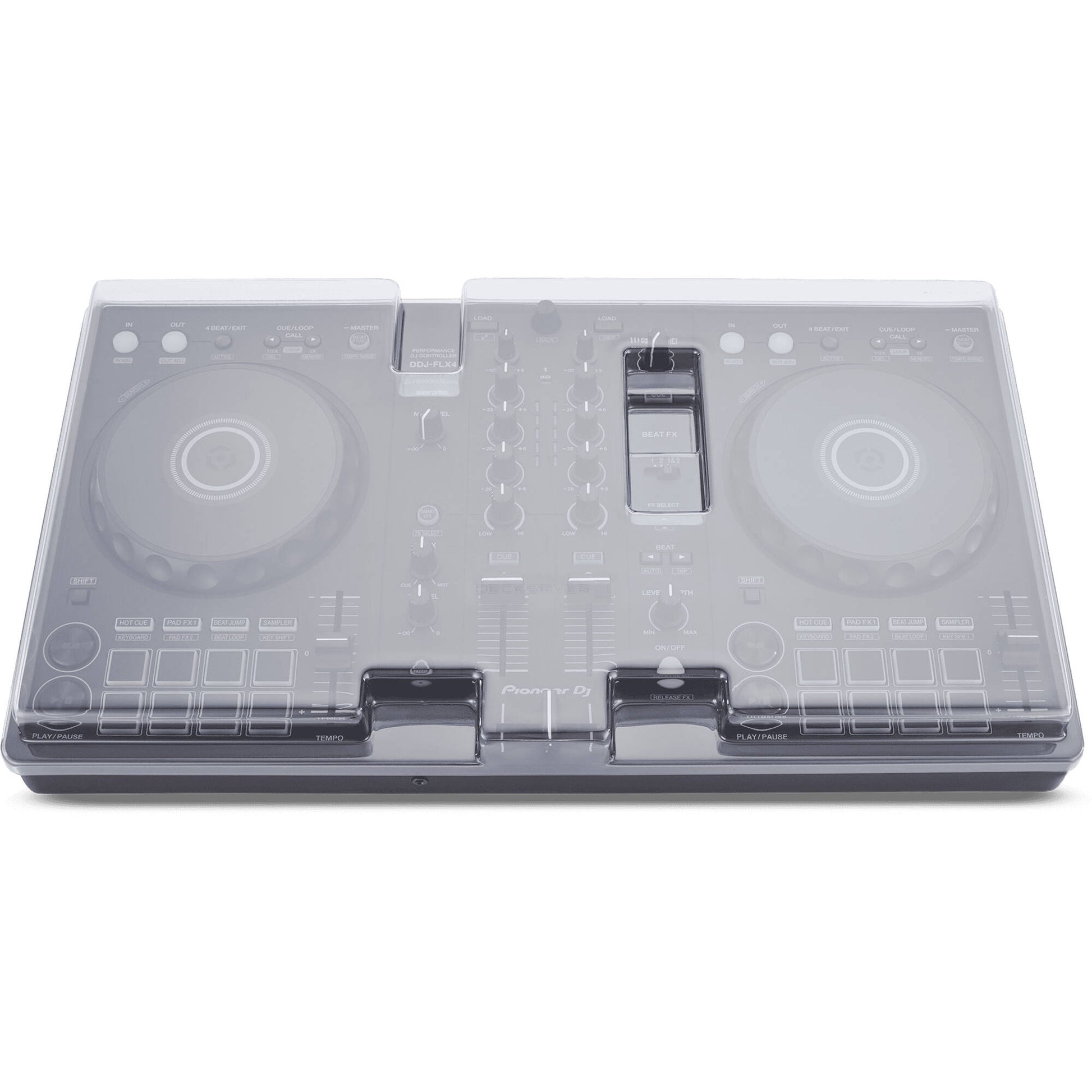 The Decksaver Light Edition cover for the Pioneer DDJ-FLX4 provides durable polycarbonate protection against dust, spills, and impacts. With a smoked/clear finish and precision fit, it shields jog wheels, faders, and controls while keeping cables connected—available at Soundium.