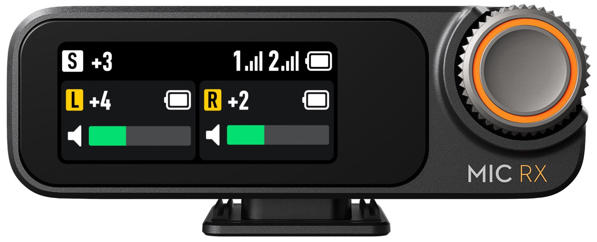 - Clear receiver interface: Built-in OLED touchscreen and dial with level, battery, and signal status. Also includes 3.5 mm headphone monitoring output.