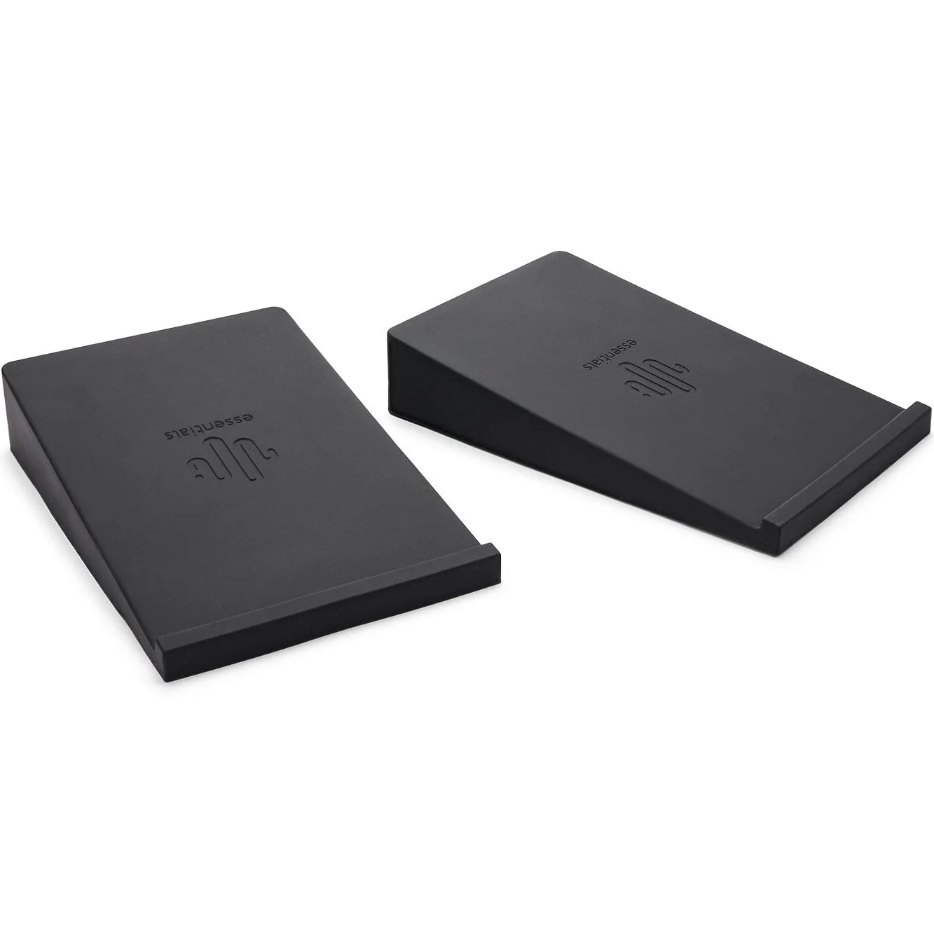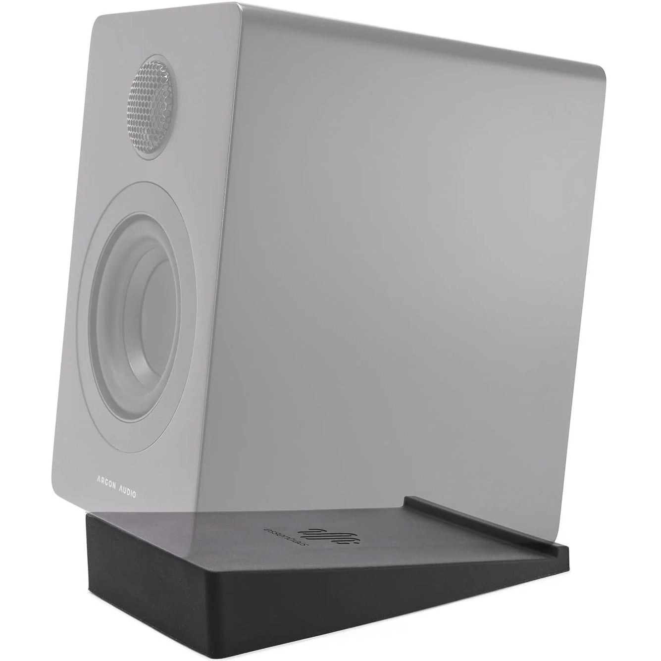 The Essentials Wedge speaker stands are designed to improve sound clarity and listening comfort when placing compact speakers on desks or shelves. With a subtle tilt and built-in acoustic isolation, they help direct sound toward your listening position while reducing unwanted reflections from surfaces — available at Soundium.