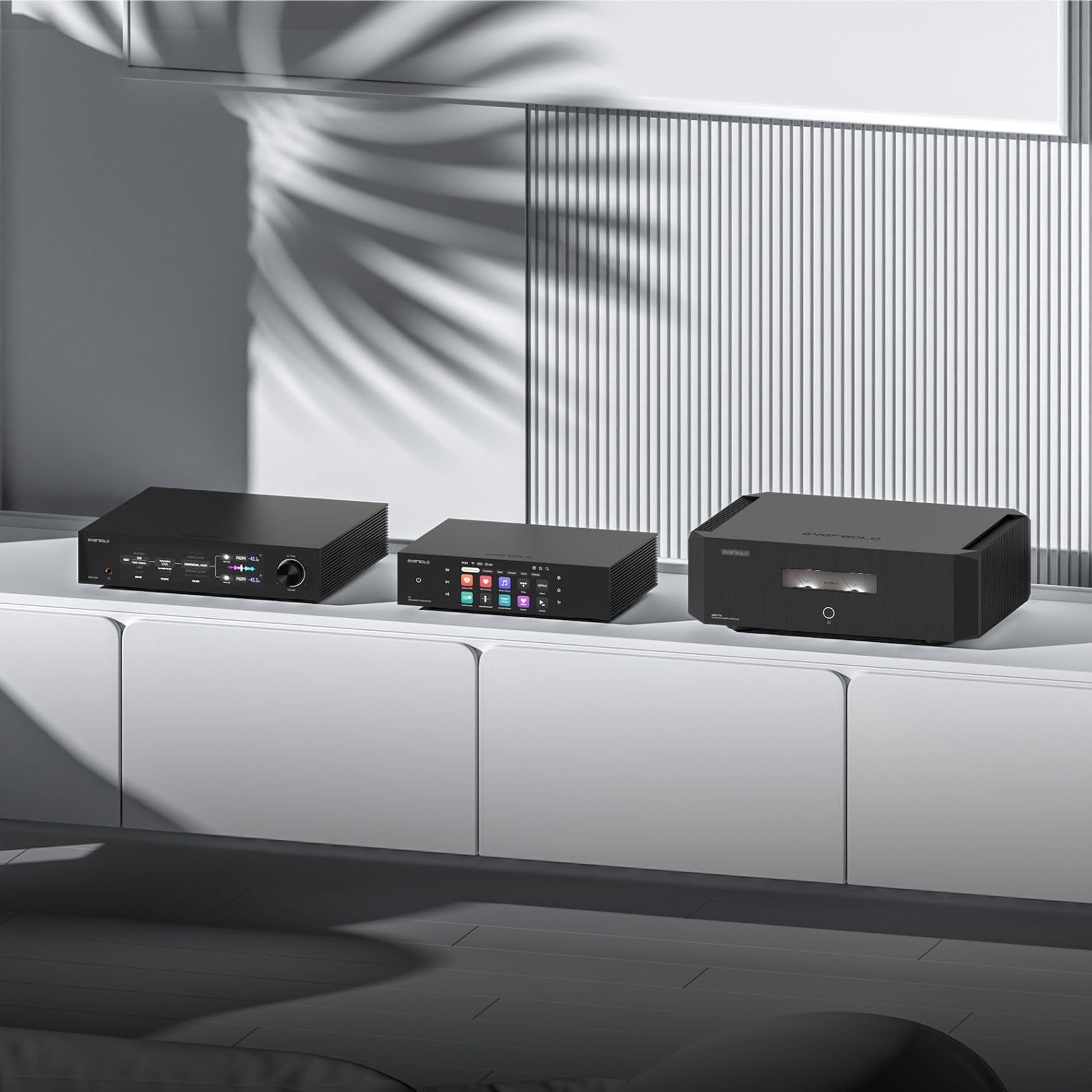 Designed to integrate with high-end DACs or amplifiers featuring digital inputs. Works with common network environments (Wi-Fi and Ethernet). Control available via touchscreen, companion app, or included remote.