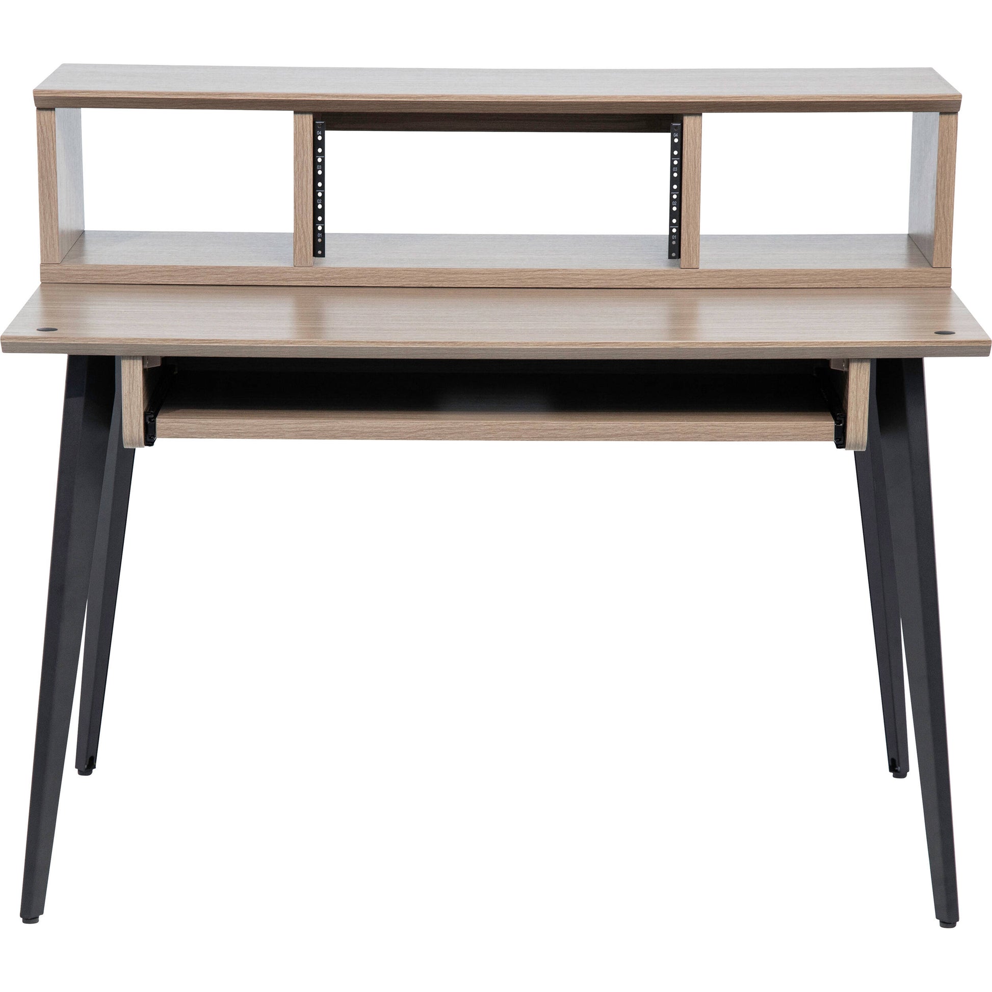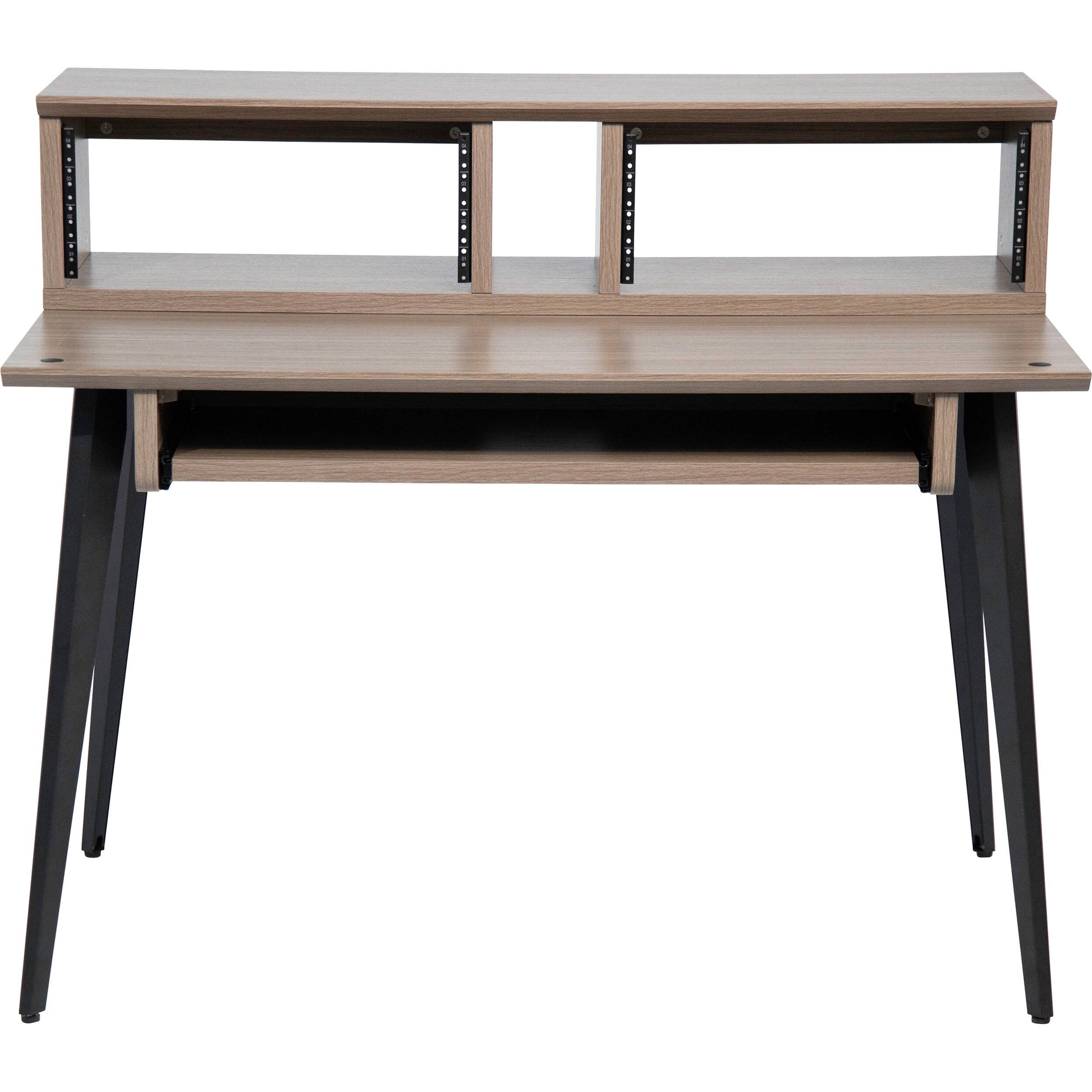 Ideal for podcasters, content creators, gamers, and home music makers, the natural gray matte Gator Elite Furniture Series Main Desk easily fits in small rooms while providing a versatile and stylish workspace. It features two platforms—an upper level for a display and compact monitors and a lower level for a mixer or control surface—and a large slide-out tray to hold a computer keyboard and mouse or a 49-note (or smaller) MIDI keyboard.