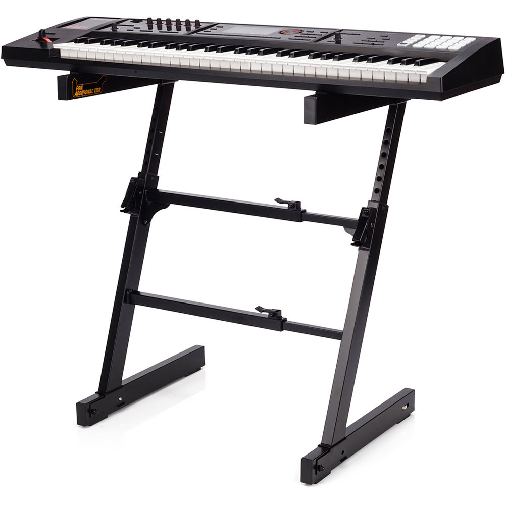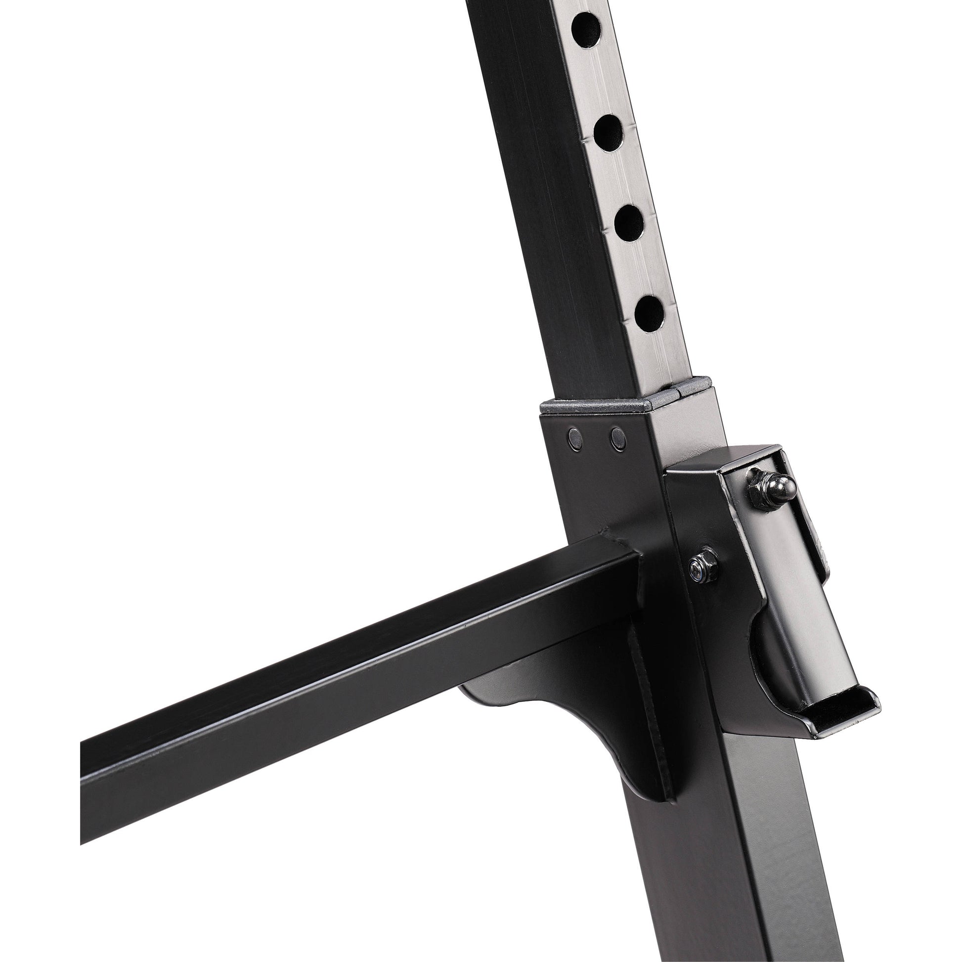 Featuring the Auto Lock Lever system, the stand allows you to adjust its height simply by lifting or lowering the stand's arms. Once you put the arms where you want them, the stand locks automatically at the selected height without adjusting any knobs, greatly simplifying setup. The adjustable rubber foot helps you to level the stand and fine-tune its height, while locking pins and adjustable moving arms ensure easy setup and take-down. For convenient transport and storage, the stand quickly folds down into a compact bundle.