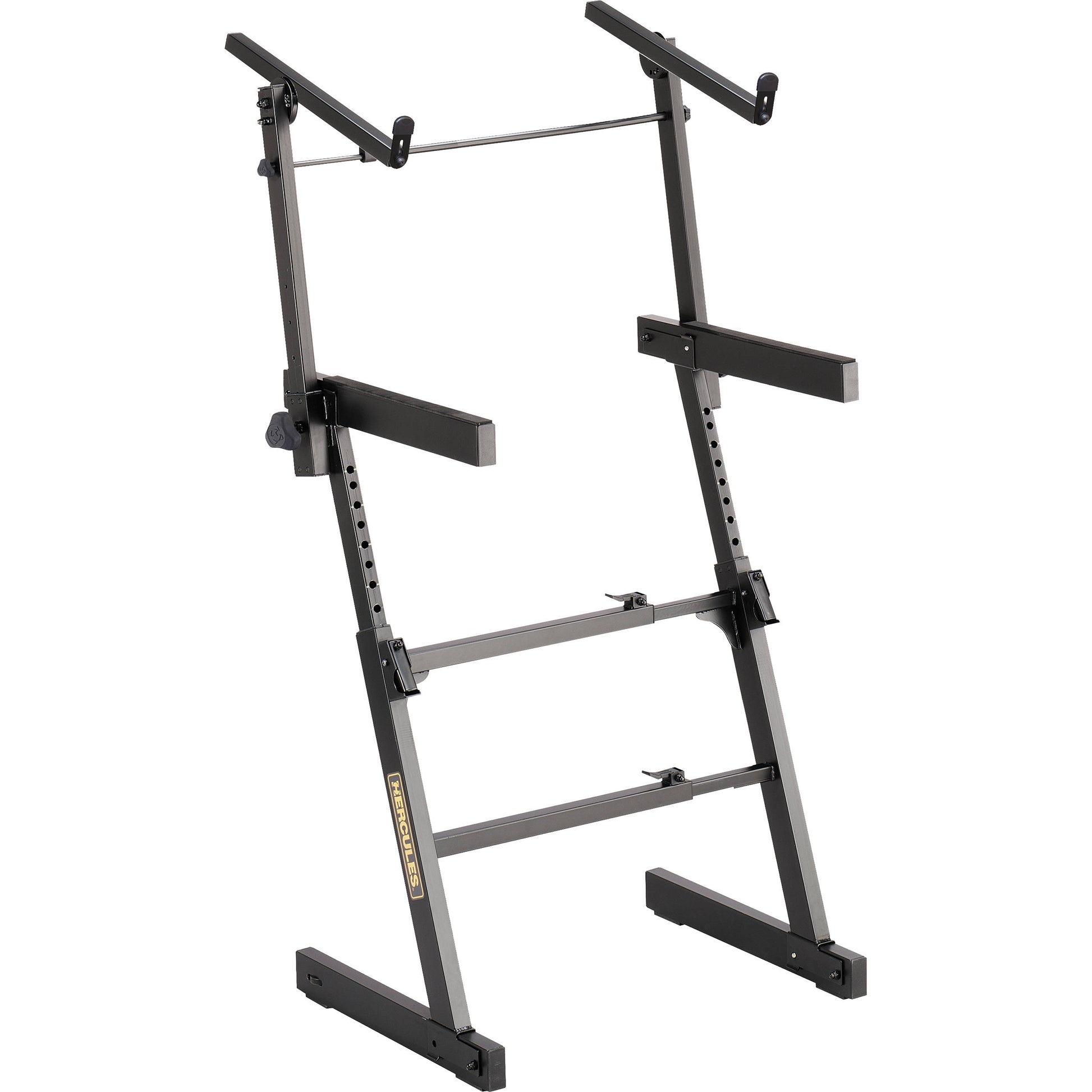 Set up in a jiffy with the Auto-Lock Z-Style Keyboard Stand from HERCULES Stands. This collapsible Z-style stand holds two keyboards, offering a load capacity of 40 kg on the upper tier and a total load capacity of 130 kg on the lower tier.