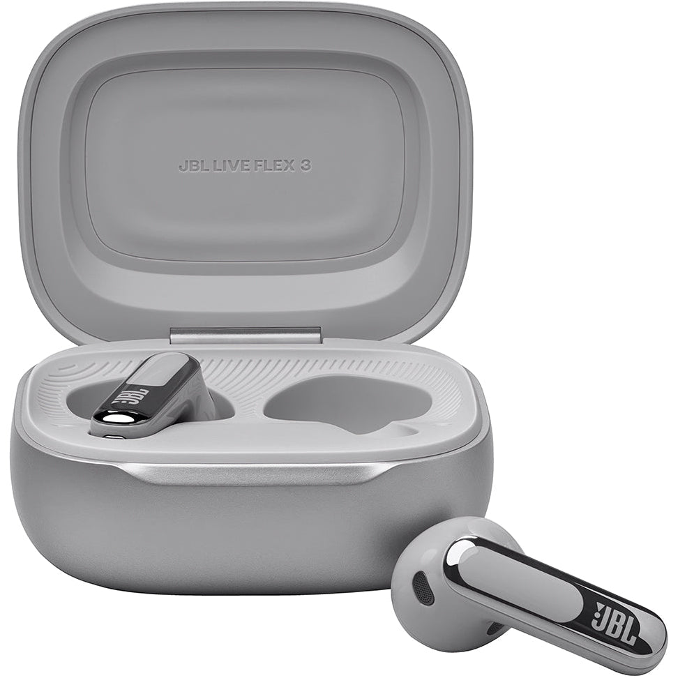 JBL Live Flex 3 are open-stick true wireless earbuds built for everyday listening with smarter control and premium convenience. A touchscreen Smart Charging Case lets you adjust key settings without opening the app, while JBL Signature Sound, Spatial Sound, and True Adaptive Noise Cancelling keep you immersed wherever you go.