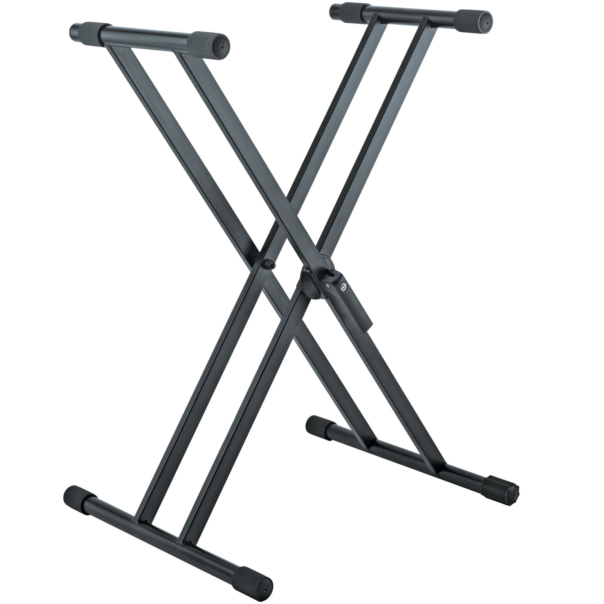 The K&M 18990 is a premium double-braced X-style keyboard stand, built for outstanding stability, comfort, and durability. Its ergonomic clamping lever allows for quick height adjustment, while the interlocking metal joint with 5° increments ensures precise positioning for any playing style. Adjustable rubber end caps provide perfect leveling on uneven surfaces, and non-slip pads keep your instrument secure. Ideal for both stage and studio use, this stand reflects K&M’s signature quality and reliability.