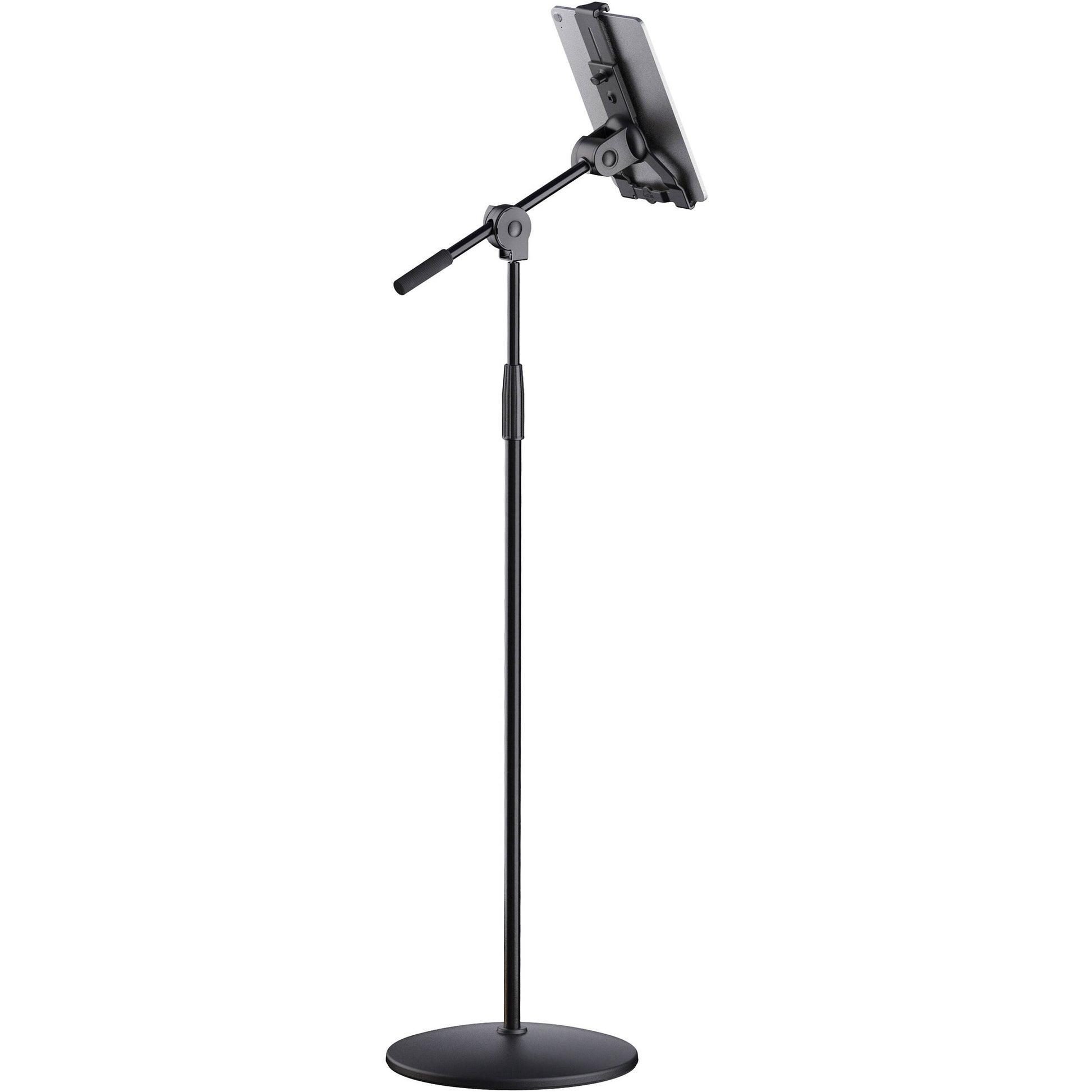 The tablet support is made of bio-based plastics. These plastics contain a proportion of over 50% up to 100% of renewable vegetable raw materials. The use of renewable raw materials helps to conserve limited petroleum resources and reduce harmful CO2 emissions. The universal tablet holder offers a user-friendly clamping mechanism for tablets with a size of approx. 10" to 16" in horizontal - and approx. 7" to 13" in vertical - orientation. The clamping range is between 15.5 and 30.7 cm. The holder is also particularly suitable for use with tablets with a protective cover or case up to a thickness of 1.8 cm. The overlapping clamping jaws with integrated rubber pad guarantee a secure hold and eliminate unwanted vibration noise. The function of the operating elements on the device and the tablet pen (portrait format only) are not affected. The holder can be tilted continuously and, thanks to the flexible boom arm, allows each user to position it individually.