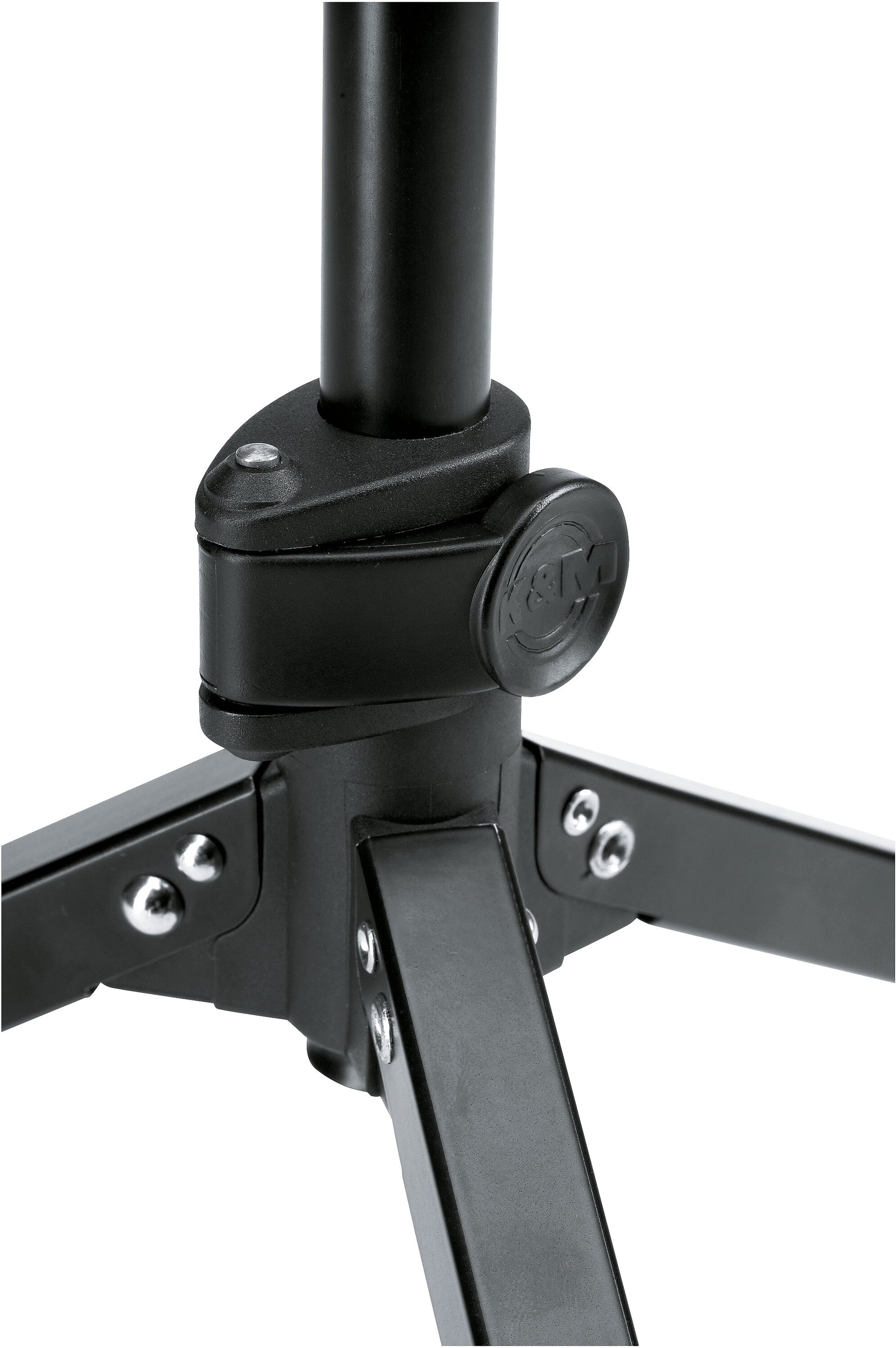 The K&M 23150-3 is a compact, lightweight telescopic microphone stand ideal for mobile use, desktop applications, and low-position mic placement. Featuring smooth height adjustment via an ergonomic clamping lever, folding tripod legs, and sturdy foot caps, it offers stability while minimizing unwanted vibration noise. Its 3/8" threaded connector ensures compatibility with a wide range of mic holders.