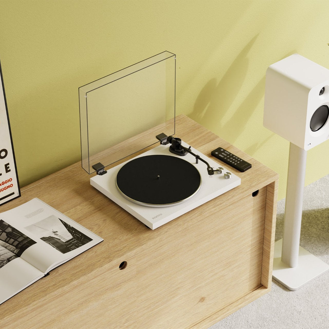The Kanto OBI3 merges analogue charm with wireless freedom. It features a belt-driven design, built-in Bluetooth 5.3, and a switchable phono stage, making it ideal for users who want both classic and modern playback options through one elegant machine.