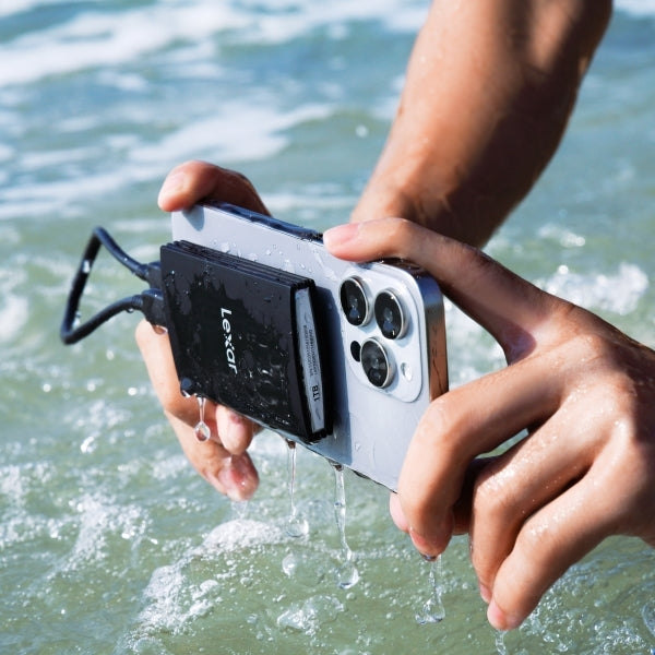 With one of the highest ratings in its product class at IP662, the Lexar ARMOR 700 Portable SSD protects against both water and dust incursion and is also drop-resistant up to 3 meters.