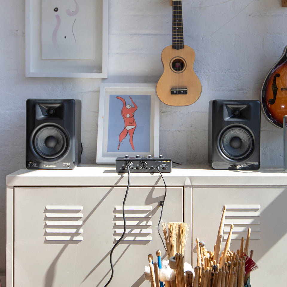 - 1 × pair of M-Audio BX5 BT monitors (active + passive)