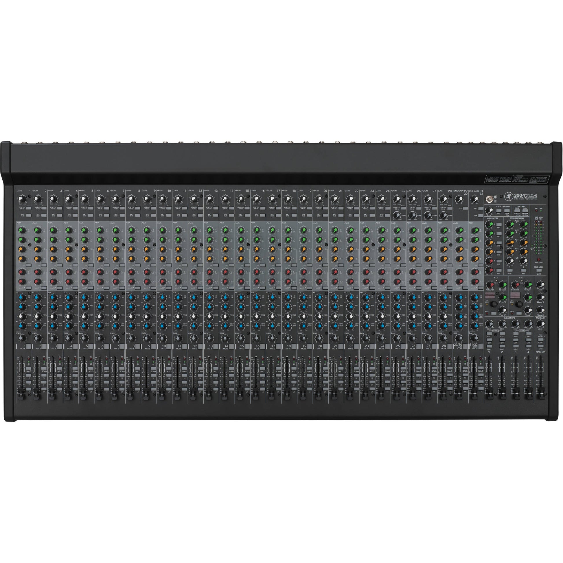 The 32-channel, 4-bus FX mixer has 8 single-knob compressors to stop the dynamic signals from poking out of the mix. There are 4 compressors are located on the last 4 microphone inputs so that critical signals (such as vocals, snare drum, guitar or keyboards) may be addressed. In addition, there are single-knob compressors on each of the 4 subgroups so that grouped signals (such as a drum set or a choir of vocalists) may be blended together for paramount smoothness.