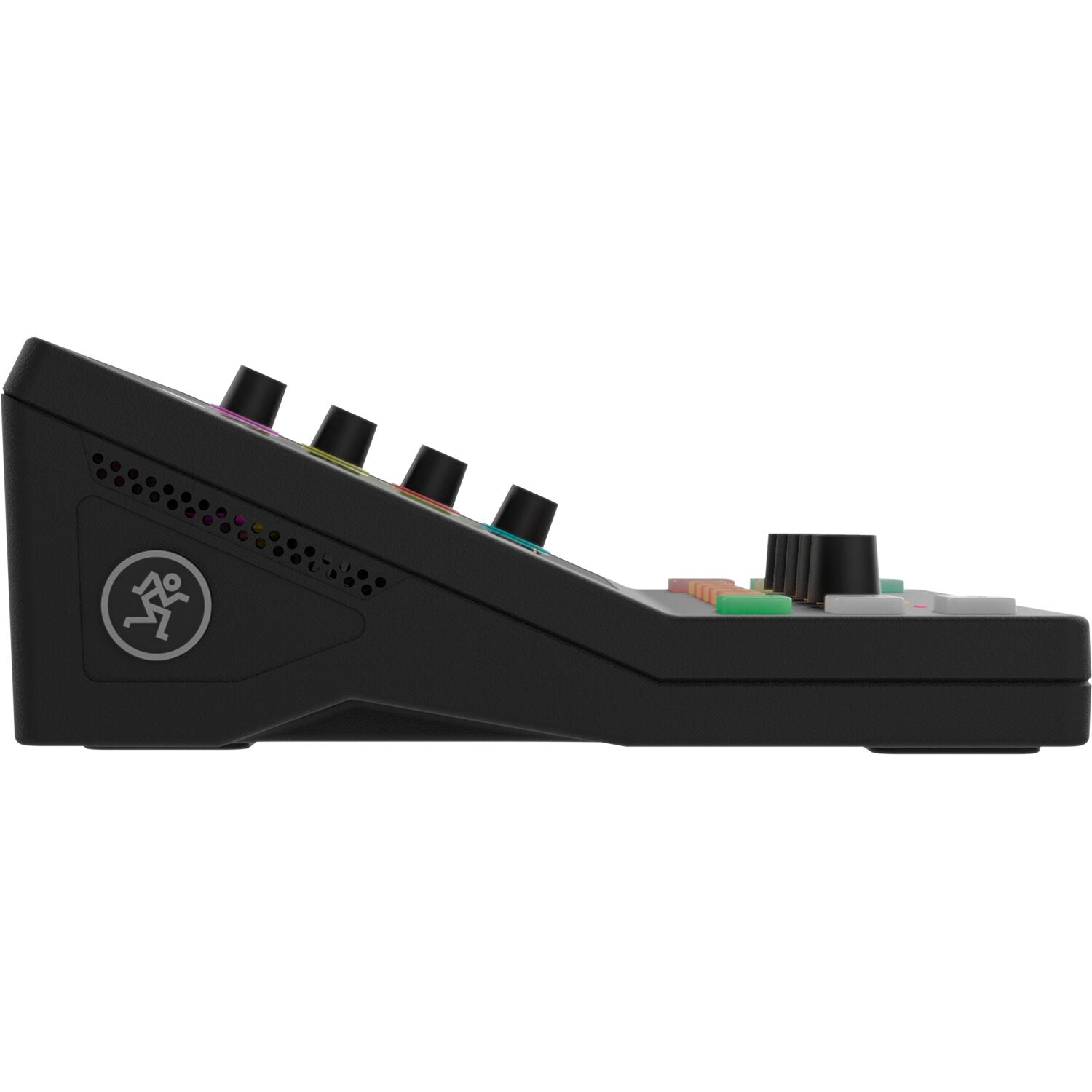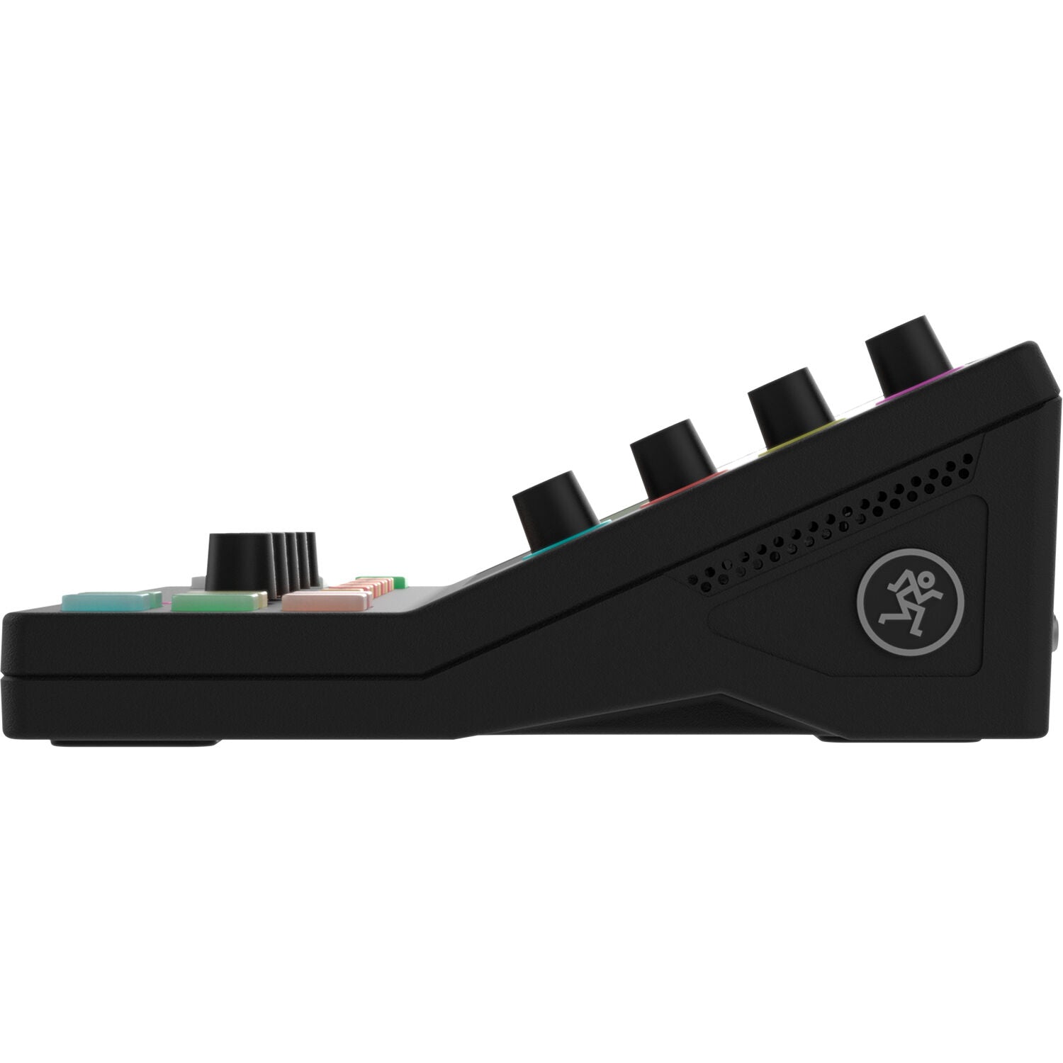 - Additional backlit buttons are provided for mute, solo, and navigation functions on each channel