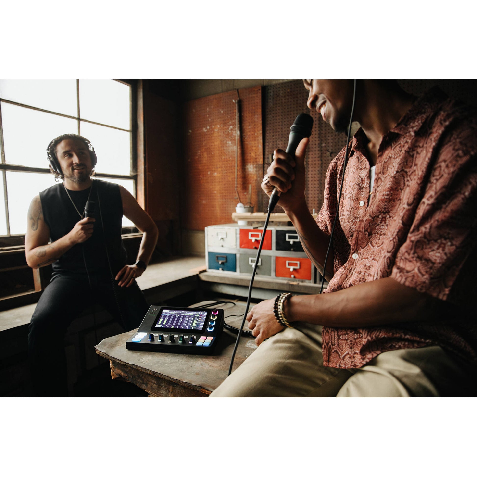 - Up to 2 guests can monitor the audio via independent 1/4" headphone outputs