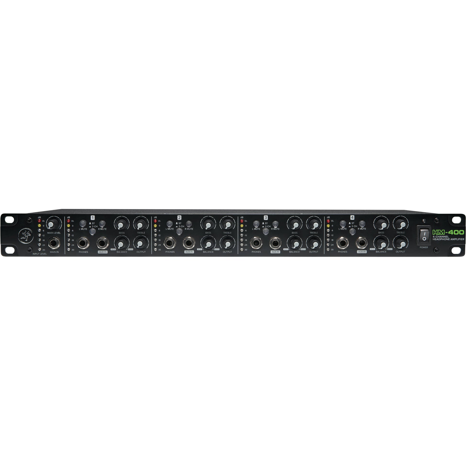 One stereo main input via XLR and 1/4" jacks can be mixed with a per-channel 1/4" stereo aux input. Each channel offers 2-band EQ for quick tone shaping, stereo balance or main/aux input mix control, and output level adjustments. Also on each channel are switches for muting left and/or right signals and operating in stereo or mono. 7-segment LED meters display main input and per-channel output levels.