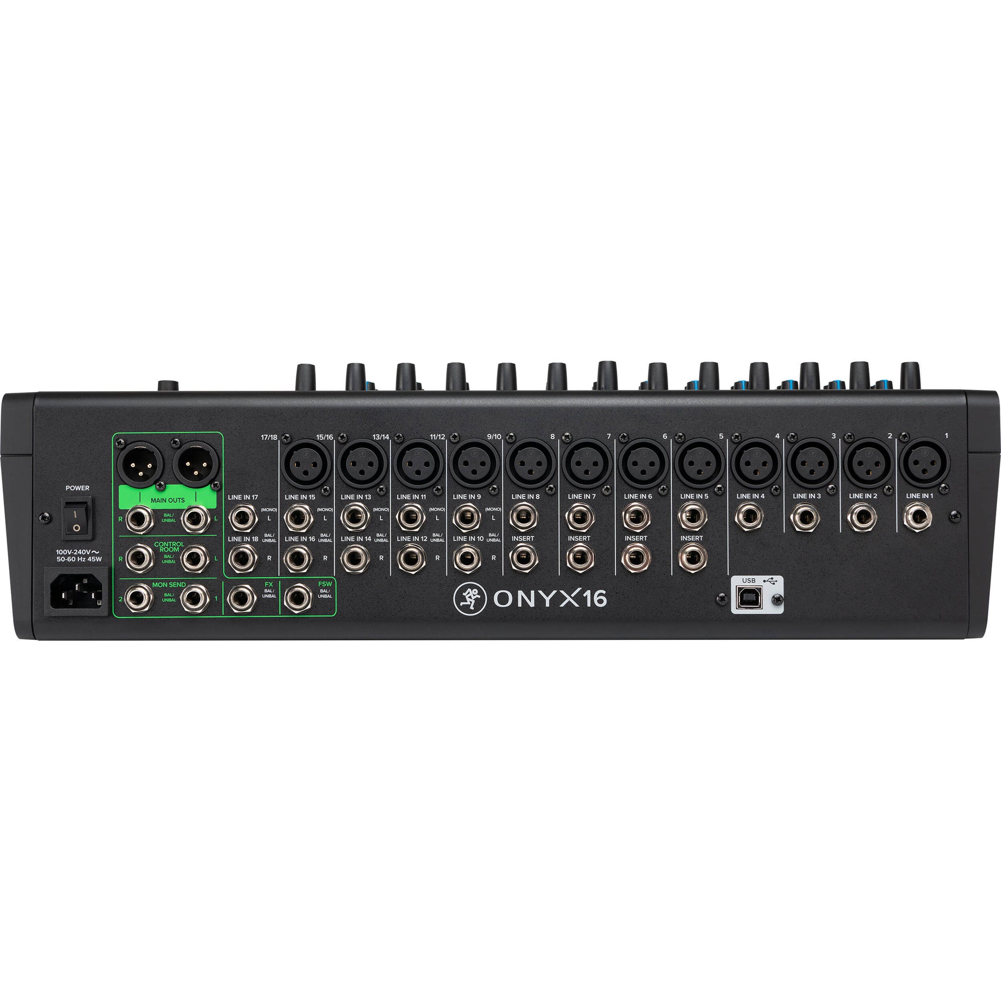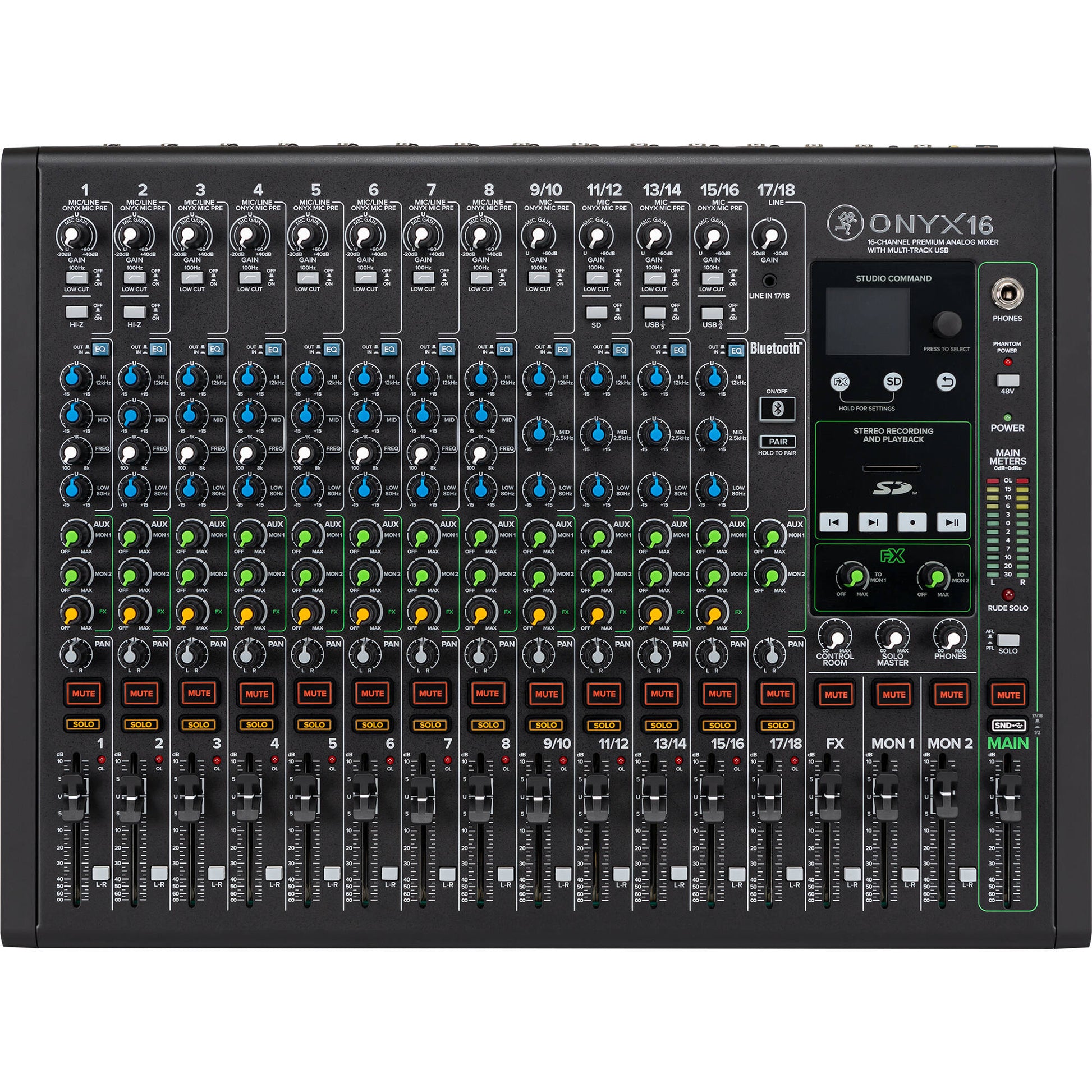 Musicians, artists, engineers, and broadcast studios looking for a professional-quality compact mixing solution for live audio, home recording, and content creation should look no further than the Mackie Onyx16, a 16-channel mixer with 24-bit / 96 kHz 18x4 multitrack recording and 12 high-gain Onyx preamps.