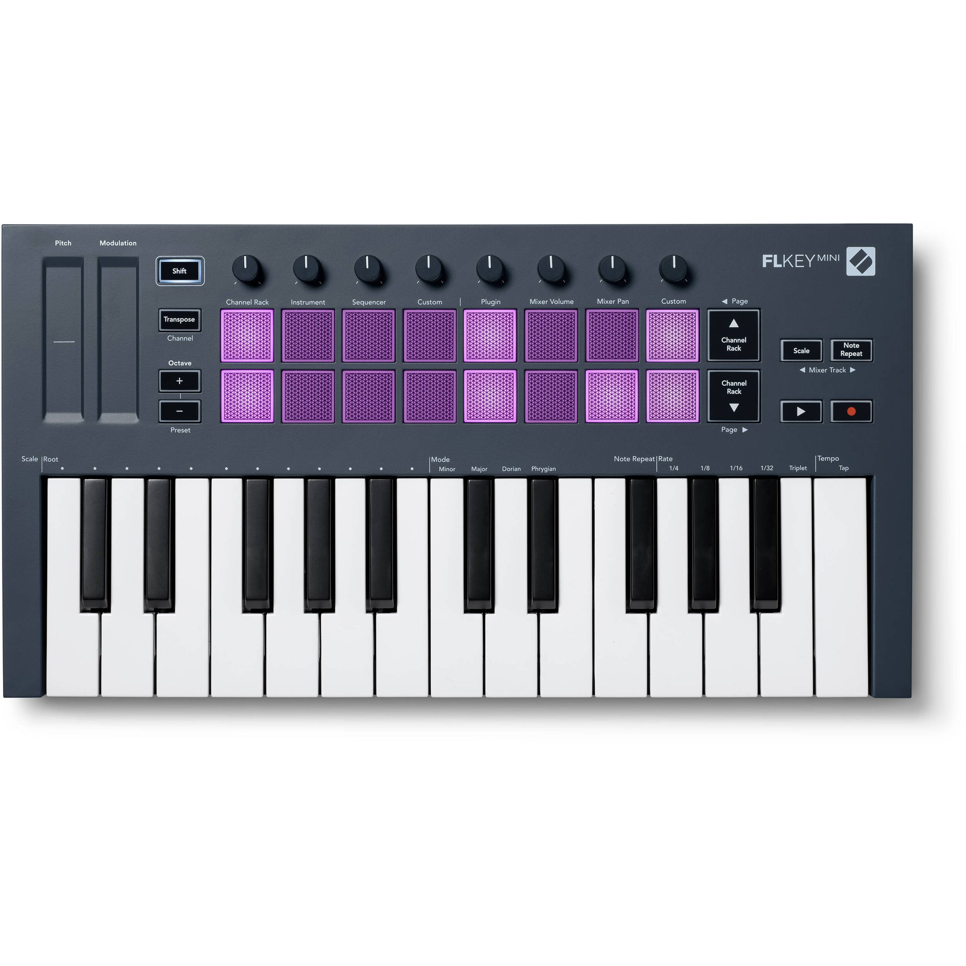 Designed with FL Studio users in mind, the FLkey Mini is a compact keyboard controller that puts sequencing, mixing, and beat creation directly at your fingertips. With its 25 mini keys, RGB pads, knobs, and transport controls, it streamlines your workflow so you stay focused on making music—anywhere inspiration hits.
