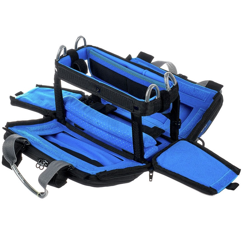 Two handles and a shoulder strap are included with the bag, which can be accessed from six directions, thus making it eminently usable by field mixers and sound recordists on location. The top is fashioned from transparent TPU and can be positioned in all directions. Three sponges inside the bag help you adjust the mixer to any desired position. The secure buckle system holds your mixer safely in place.