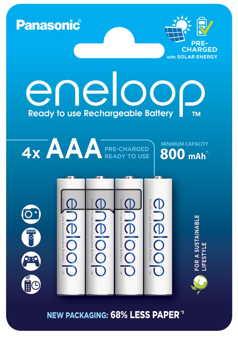- 4 × Panasonic Eneloop AAA 800 mAh rechargeable batteries
