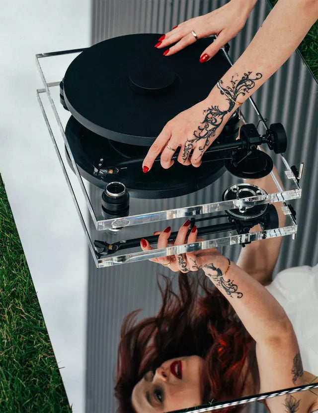 - Acrylic chassis with aluminium components: High internal damping paired with acoustic aluminium tonearm and platter for clarity and control
