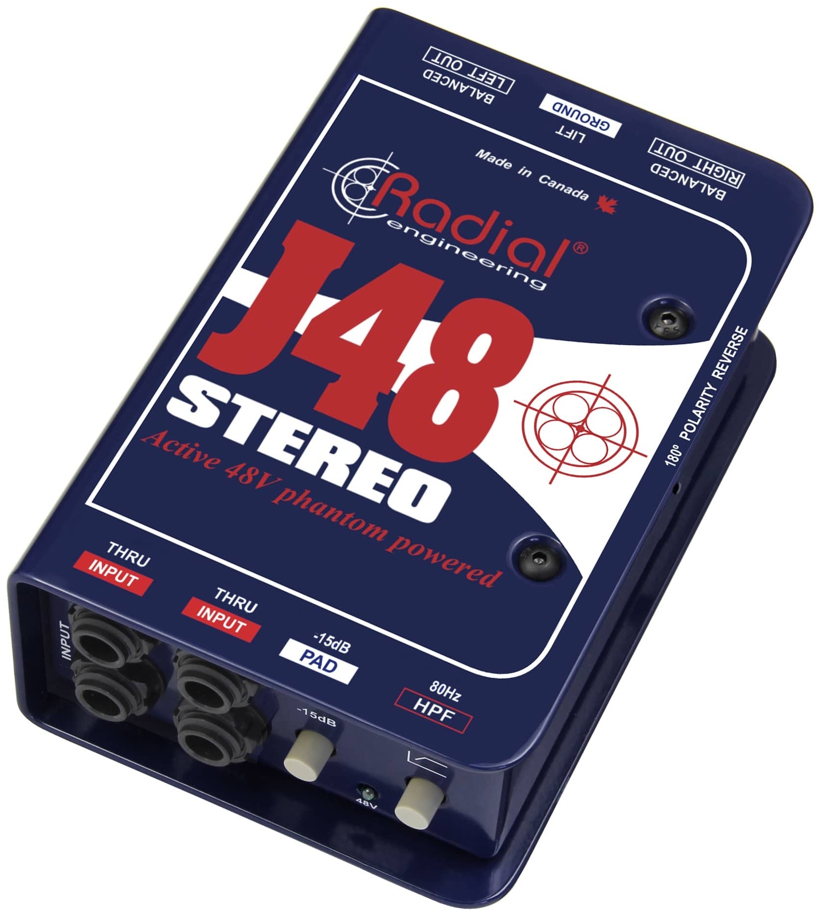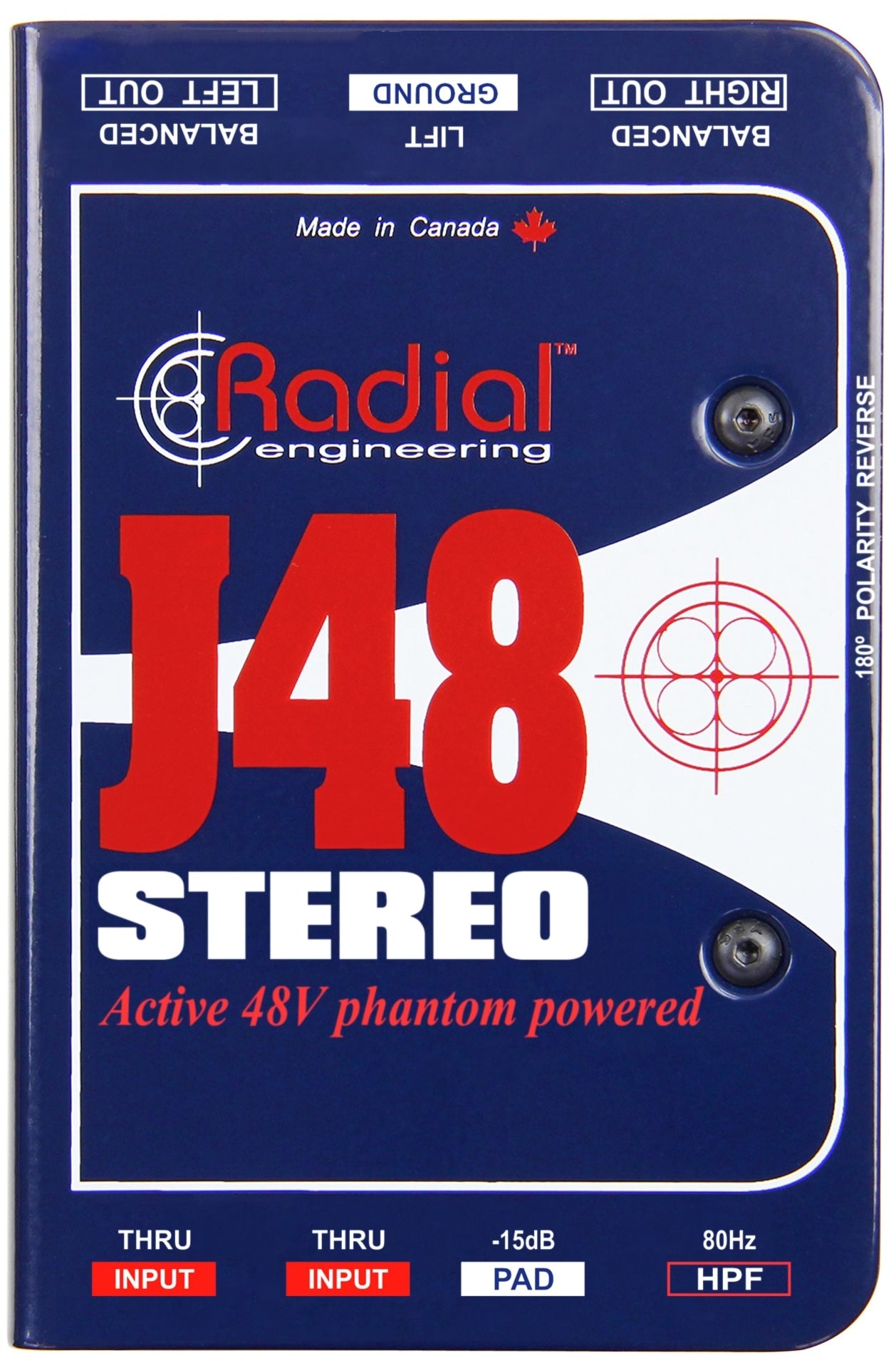 Taking their popular J48 direct box and adapting it for stereo or dual mono sources, the J48 Stereo Phantom Powered Active Direct Box from Radial Engineering is constructed from rugged 14-gauge steel, making it at home on the stage and in the studio. Its design allows for low distortion and a very neutral sound to retain the natural tone of your instrument. A -15 dB pad and selectable high-pass filter at 80 Hz allow you to work with higher-volume sources and eliminate lower-frequency rumble if desired.