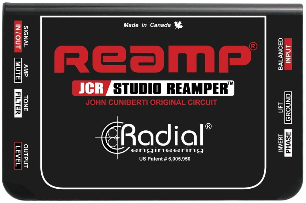 The Radial Engineering Reamp JCR is a passive reamper that allows you to take a prerecorded track and send it back to a guitar or bass amplifier and re-record it. The benefits are tremendous: instead of worrying about the sound of the track, you can focus your attention on getting the best musical performance. Once the performance has been captured, you can reamp the track even in the absence of the guitarist by moving the mics around the room, trying various amplifiers, or introducing effects. Additionally, you can also reamp the track later as the production develops.