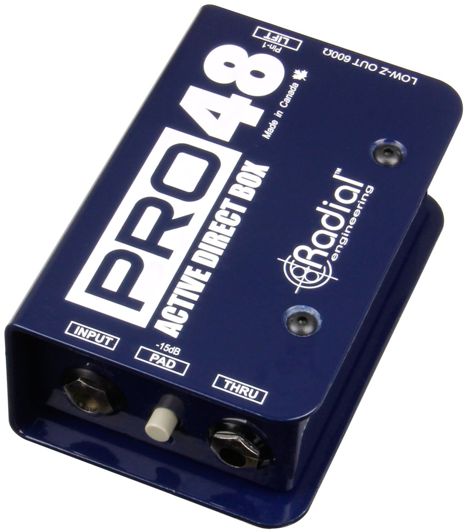 This makes the Pro48 an ideal candidate for use with battery-powered active basses and acoustic guitars that tend to overload direct boxes. An input pad helps prevent overload from hot signals and a ground-lift switch is provided to reduce noise caused by ground loops.