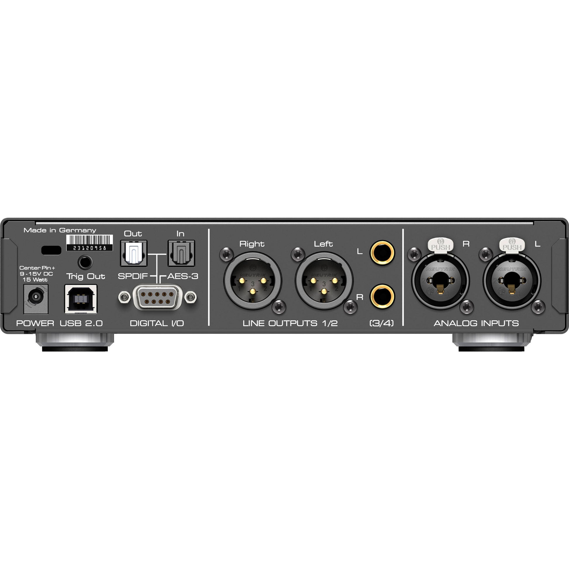 - Digital I/O: 1 × AES/EBU XLR, 1 × coaxial S/PDIF, 1 × optical S/PDIF/ADAT