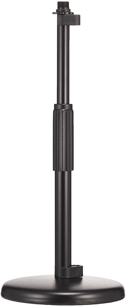 The RØDE DS1 is a durable desktop microphone stand designed for podcasting, broadcasting, livestreaming, and studio use. Its heavy all-metal base ensures stability, while the adjustable height allows for precise microphone positioning on any desk or workstation.