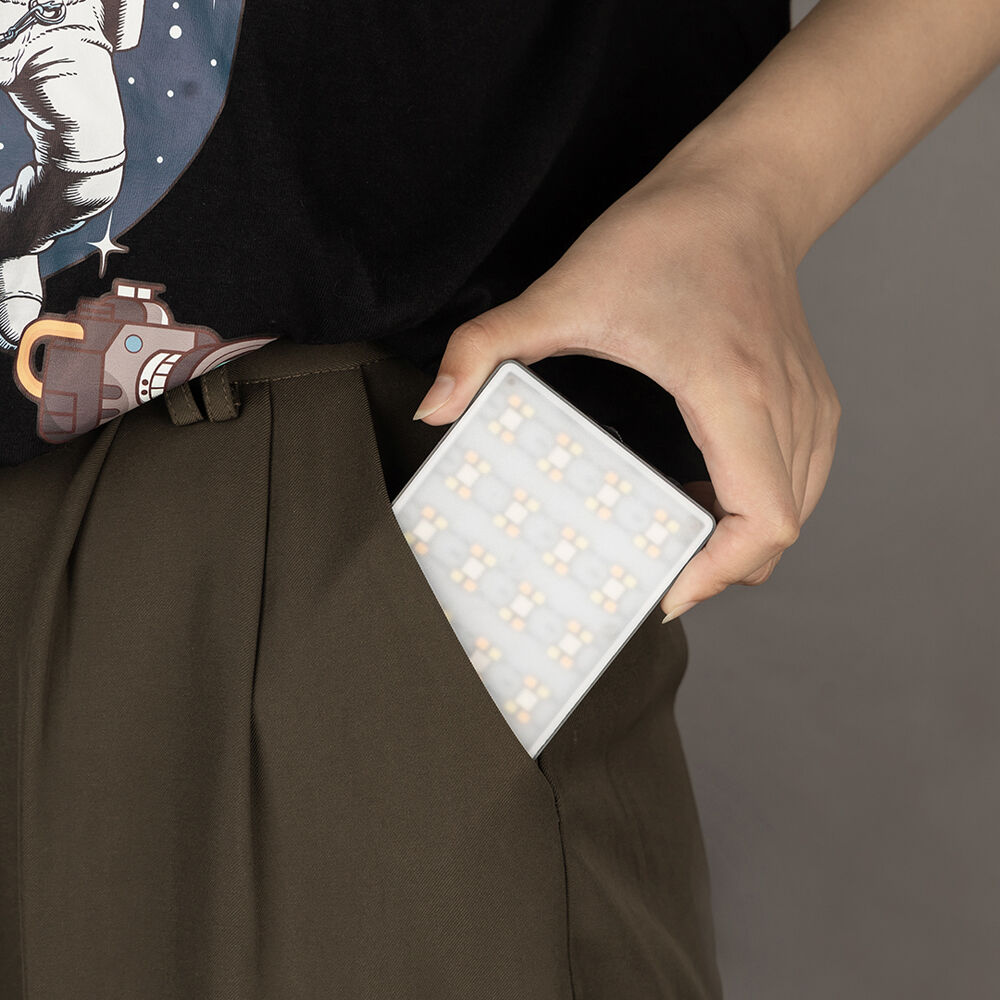 The light features a maximum of 1580 lux at 11.8", 360° adjustable hue, 100 levels of saturation, and 0 to 100% dimming. A bright color OLED screen on the back allows you to see the light's color, brightness, and battery status. Its durable metal housing provides efficient heat dissipation, and it features two 1/4"-20 threads to utilize other mounting gear, such as the included shoe mount ball head adapter. A diffuser is also included to soften the light output.