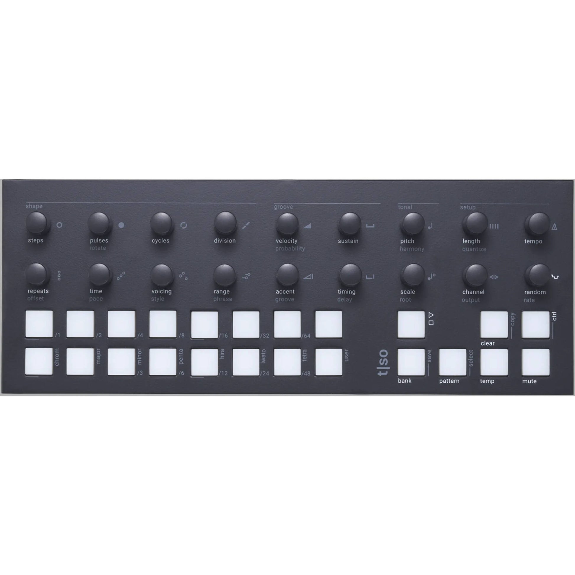 The Torso Electronics T1 is crafted for experimental producers, hardware enthusiasts and live performers who want to explore generative and evolving musical patterns rather than just traditional step-sequencing. With 16 independent tracks, deep algorithmic tools, Euclidean rhythms, random modulation and full I/O connectivity, the T1 becomes the central creative engine of your rig.