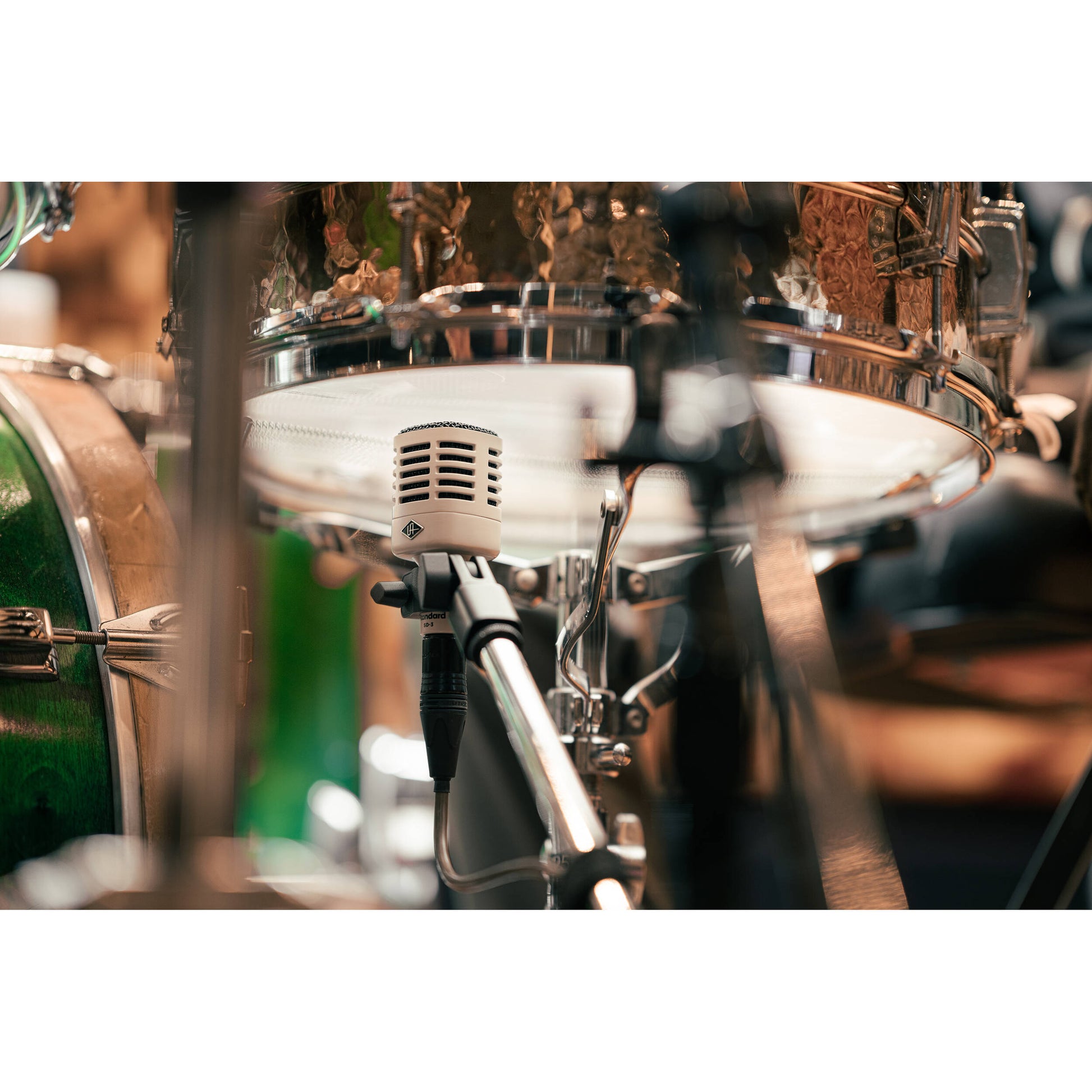 Add vintage sound and vintage look to your live-sound and studio-recording setup with the Universal Audio SD-3, a cardioid dynamic microphone featuring a rugged all-metal construction and cool, retro look. The SD-3's hand-selected dynamic capsule can handle extreme SPL while the directional, cardioid polar pattern rejects off-axis sounds, making the mic ideal for snare drums, guitar amps, brass, and more.