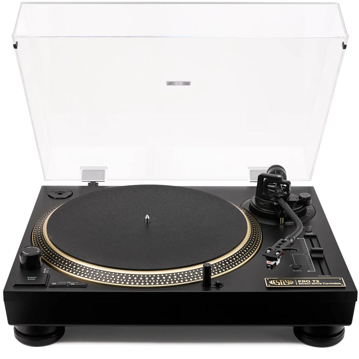 The Pro T2 offers the best of both worlds — DJ-style performance and audiophile-level sound. Skip complex setups and external gear: you get direct drive stability, premium cartridge, and built-in phono amplification all in one unit. Whether you're spinning vinyl at home or performing live, you’ll experience detailed sound, tight bass, and intuitive control.