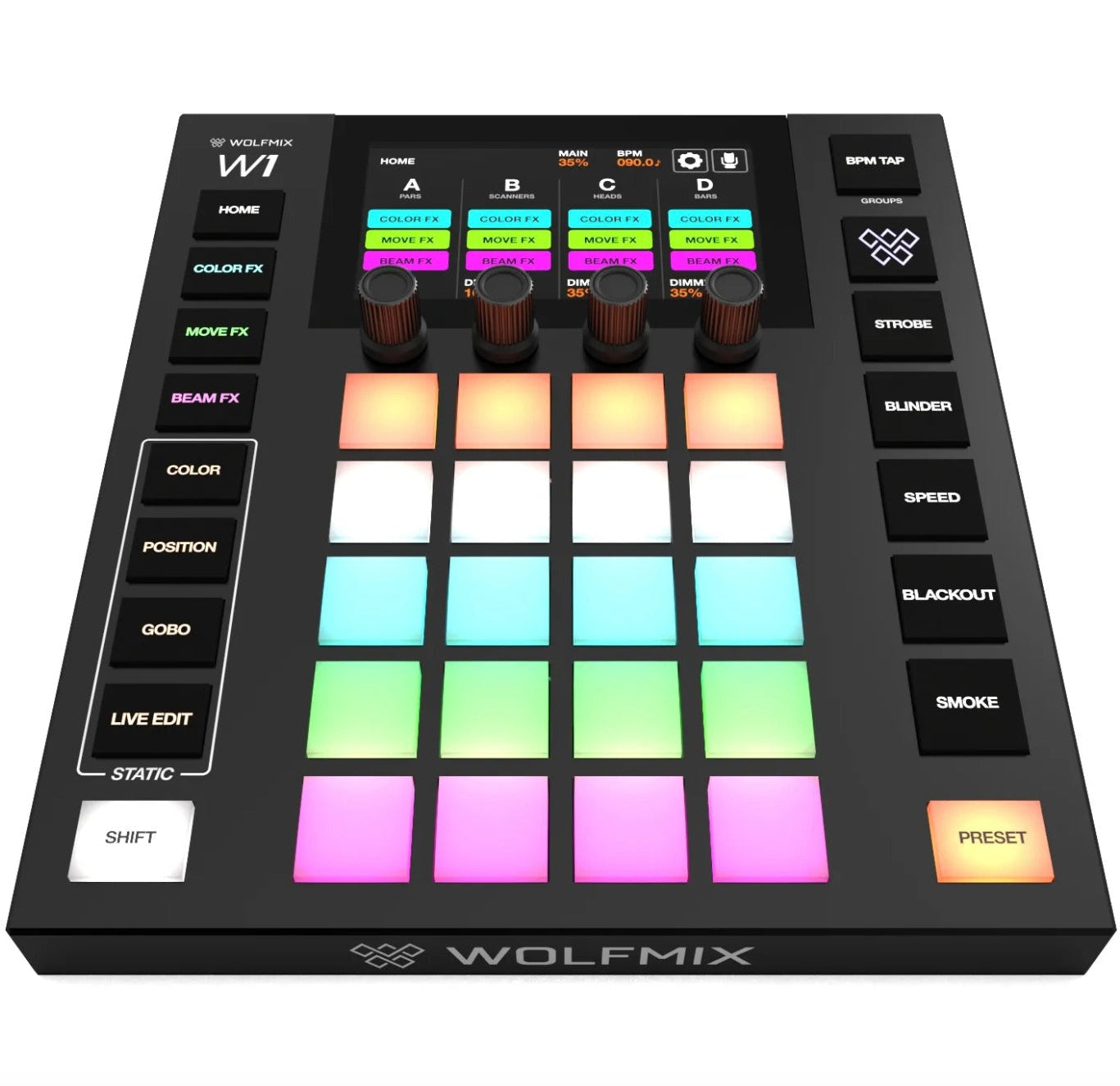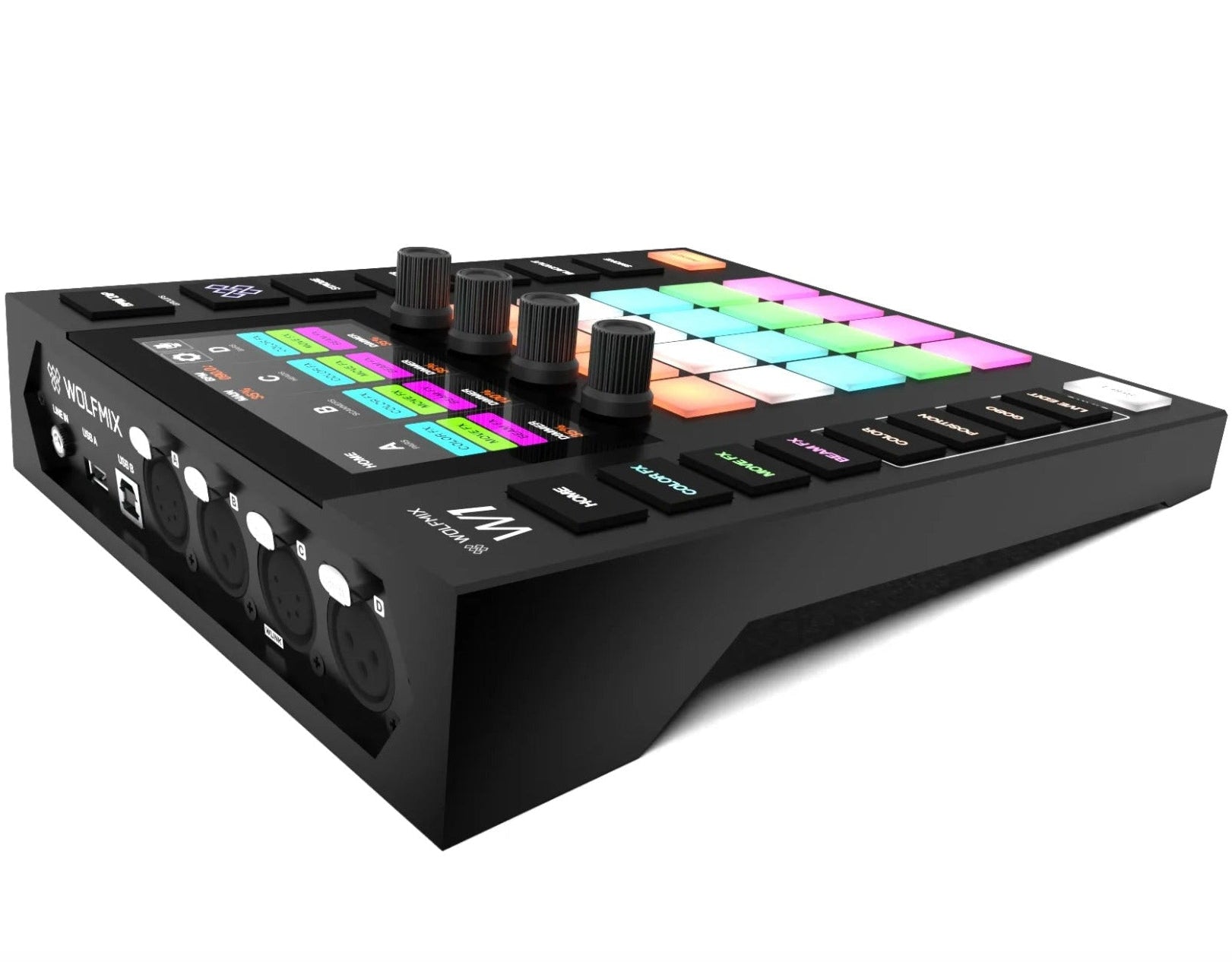 The Wolfmix W1 MK2 is built for lighting designers, DJs, and live performers who want powerful control over complex light shows without being tied to a computer. It supports up to four DMX universes, music/BPM sync, a full touchscreen, and a hardware layout made for quick reactions on stage—Soundium supplies this unit for creative visual control.