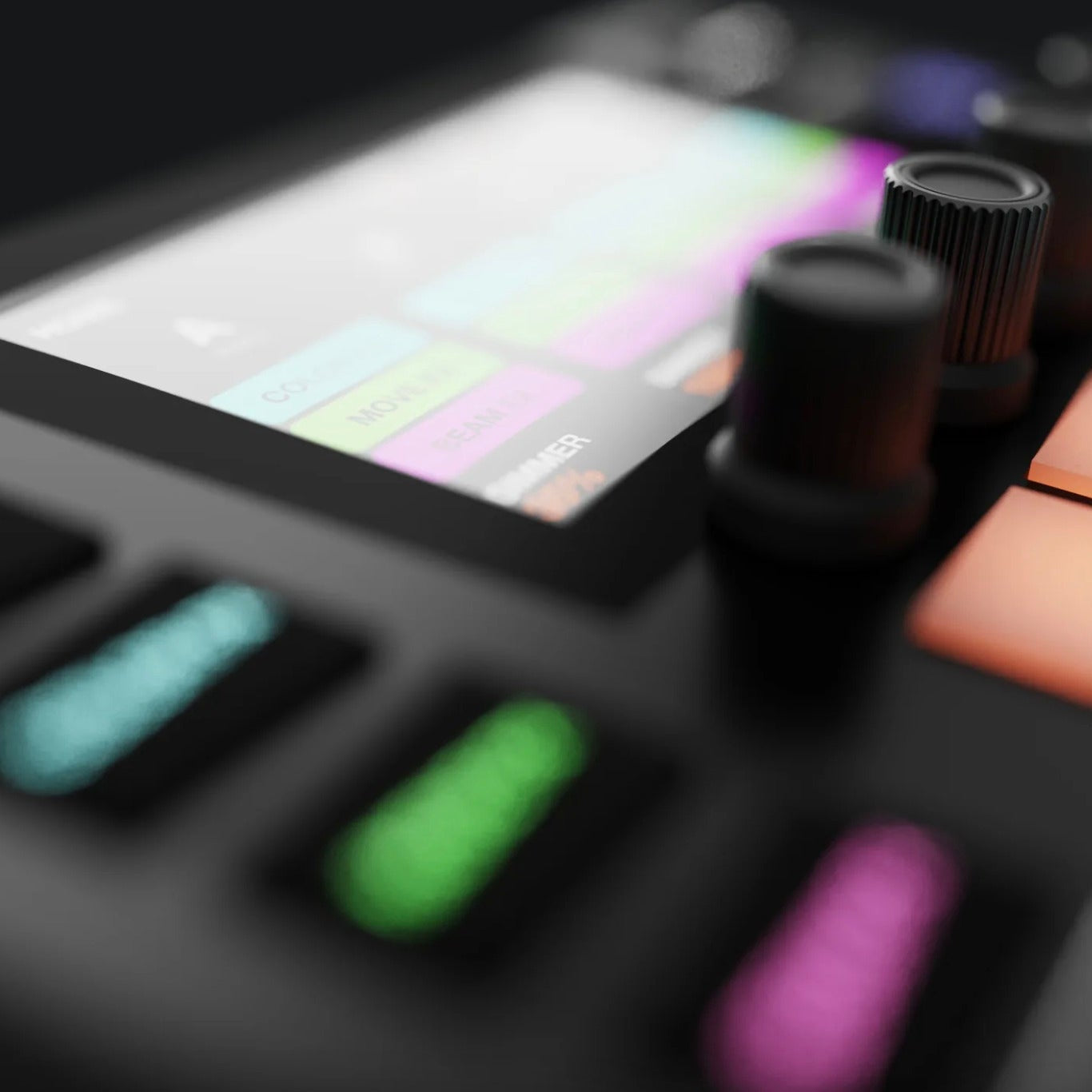 - 37 silicone backlit buttons + 4 rotary encoders: Tactile control with large encoder caps and responsive knobs for fine adjustments on the fly.